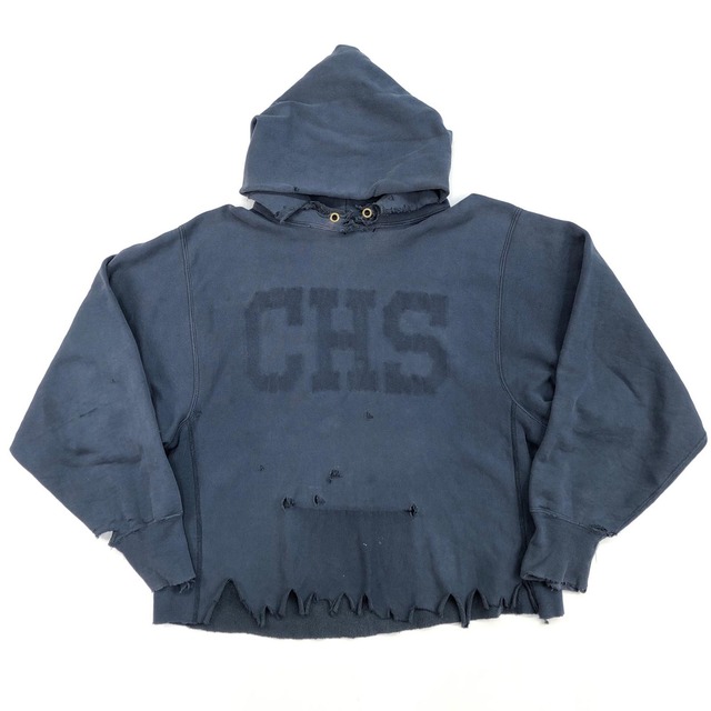 CHAMPION チャンピオン 80年代 USA製 トリコタグ 目なし リメイク ダメージ リバースウィーブ スウェットパーカー フーディー CHS カレッジ パッチアップリケ スウェット ネイビー タグ 表記 XX- LARGE