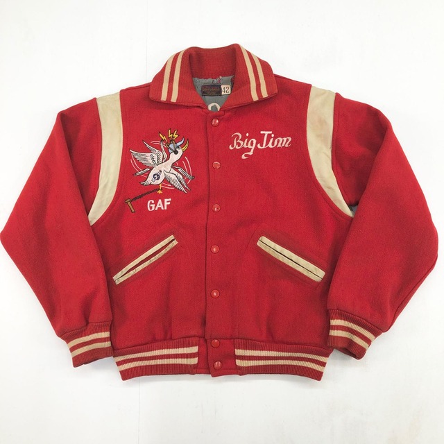 WILSON ウィルソン 40 -50年代 USA製 USAFSS スタジャン アワードジャケット バーシティジャケット U.S.AIR FORCE ミリタリー 両面刺繍入り レッド タグ表記 42 メンズ M- L 位