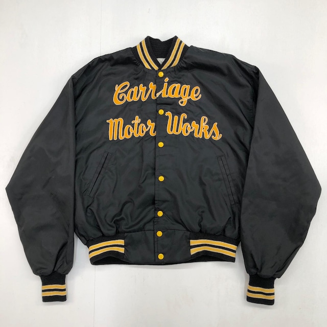 WEST WIND ウエストウインド 70年代 CARRIAGE MOTOR WORKS チェーン刺繍入り ナイロンスタジャン ナイロンベースボールジャケット ブラック タグ 表記 XL ビッグサイズ