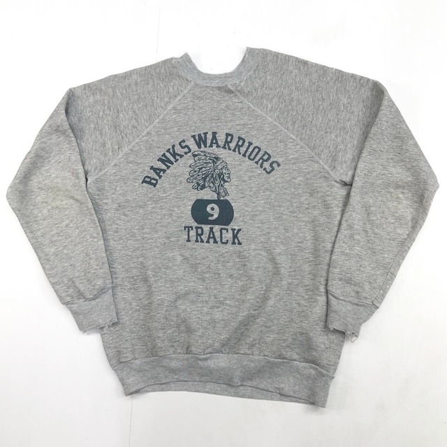 UNKNOWN 70 -80年代 USA製 ラグランスウェット BANKS WARRIORS TRACK 4段 カプセルプリント ライトアッシュグレー タグ 表記 サイズ X-LARGE
