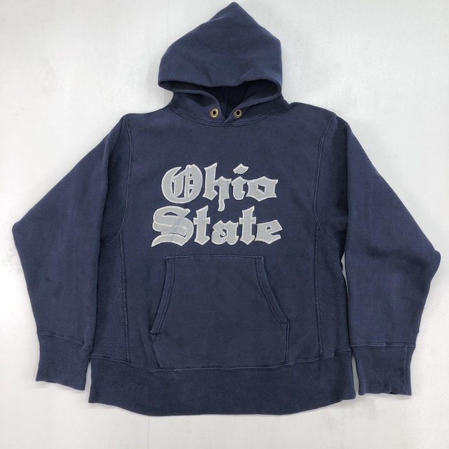 CHAMPION チャンピオン 80年代 USA製 トリコタグ 目なし リバースウィーブ スウェットパーカー フーディー OHIO STATE UNIVERSITY カレッジ プリント 2段プリント スウェット ネイビー タグ 表記 SMALL
