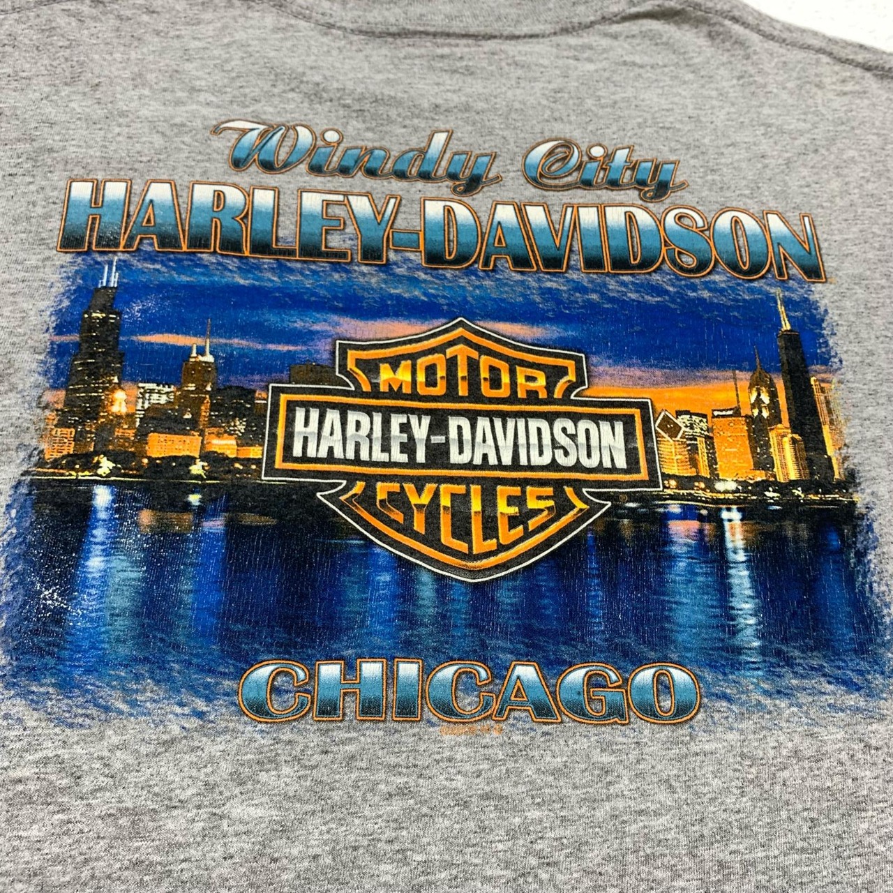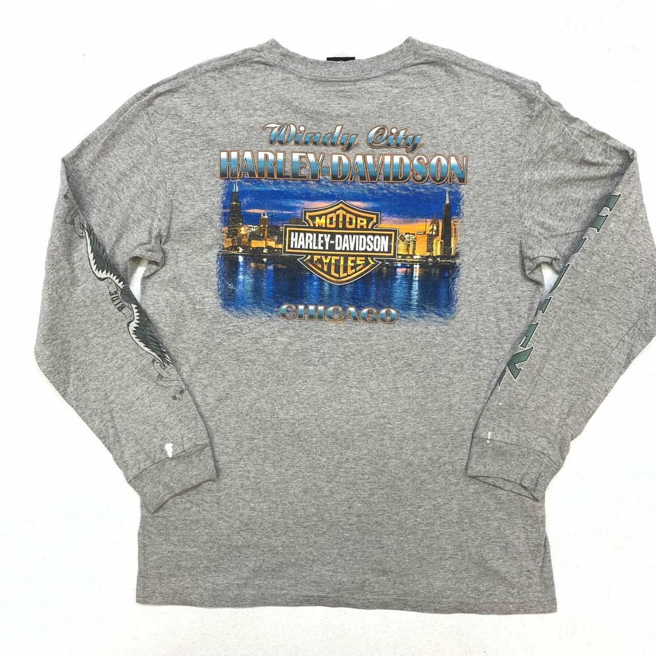 HARLEY-DAVIDSON ハーレーダビットソン 長袖Tシャツ 00年代 WINDY CITY CHICAGO アームプリント グレー サイズ:L