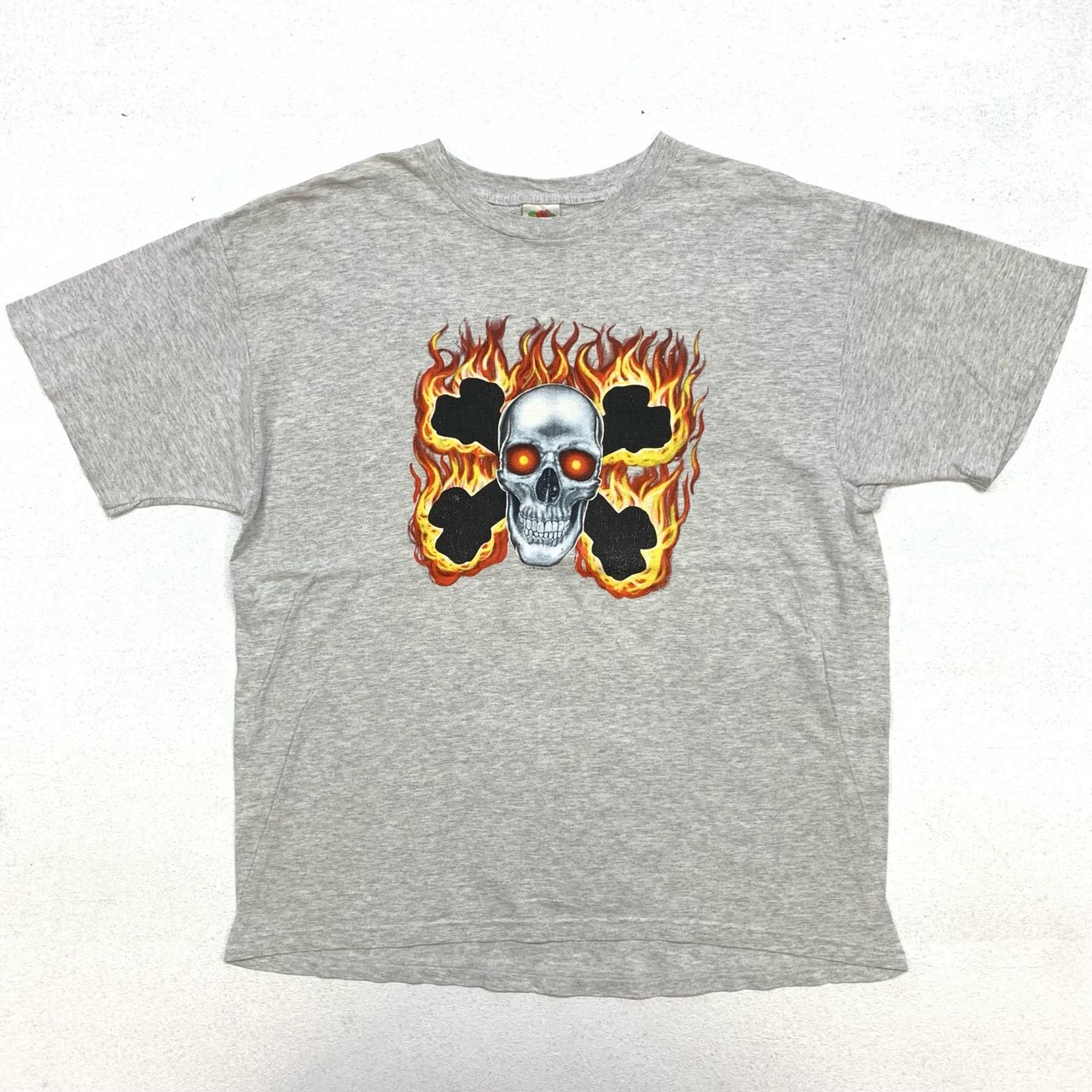FRUIT OF THE LOOM|フルーツオブザルーム 半袖Tシャツ ~00年代 FIRE SKULL クロスボーン グレー サイズ:XL