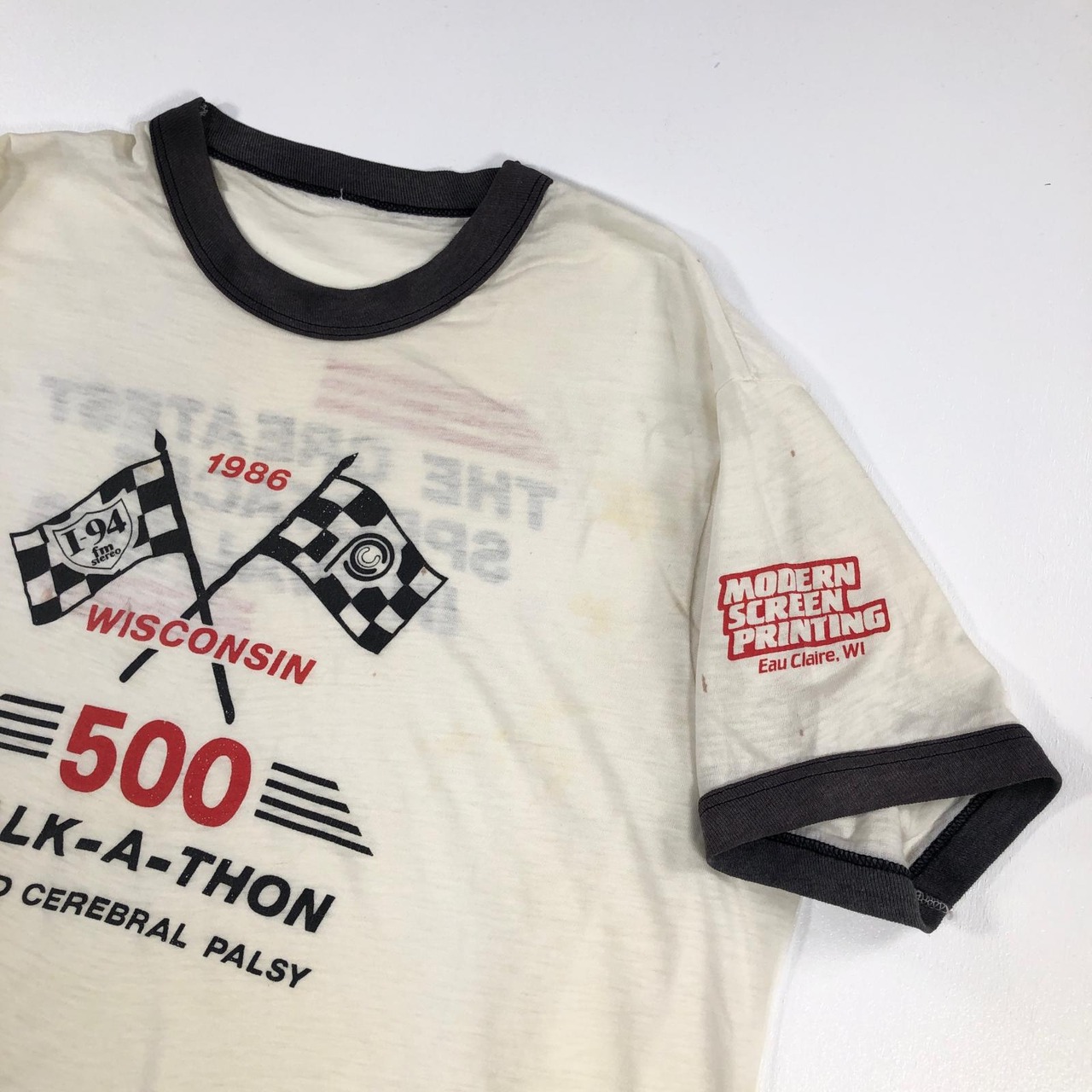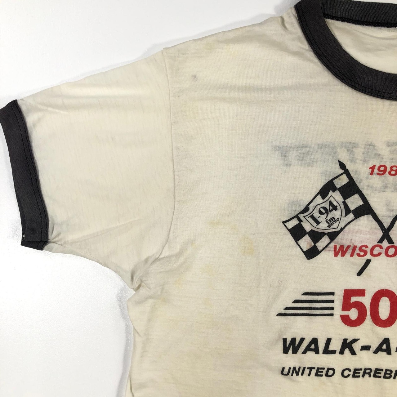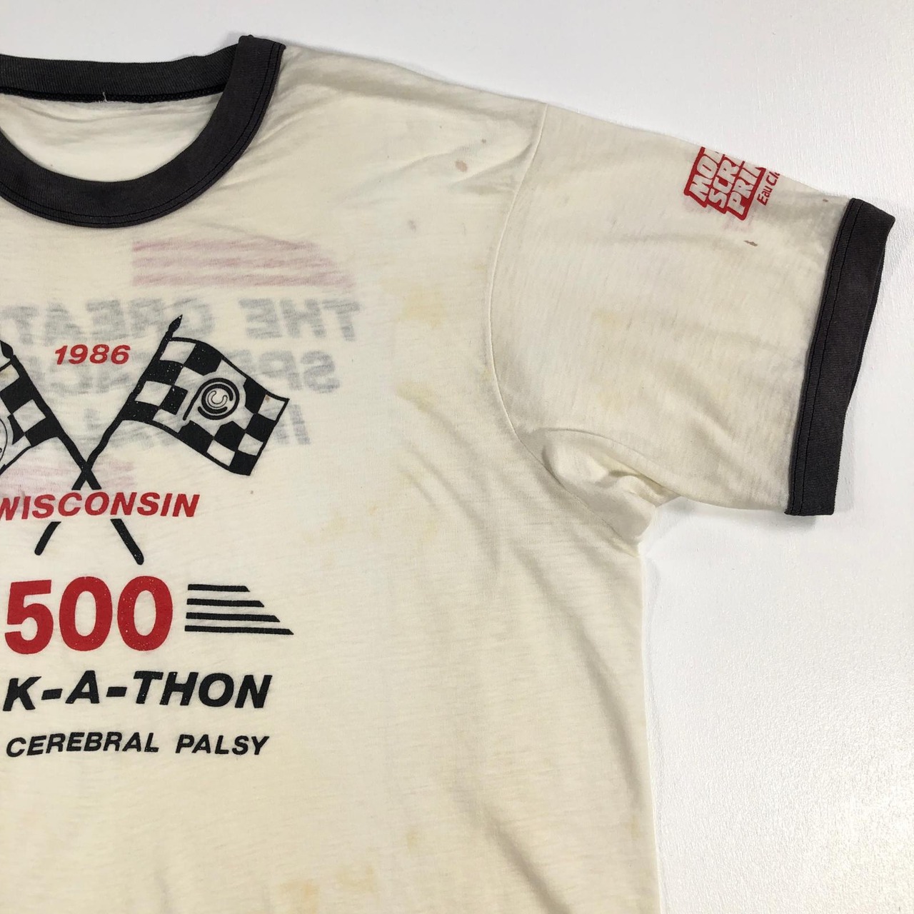 1986 WISCONSIN500 半袖Tシャツ リンガーT トリムT ホワイト