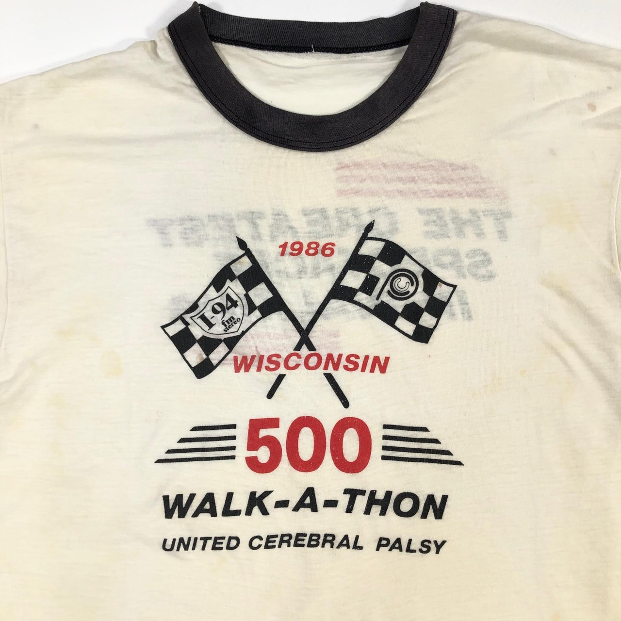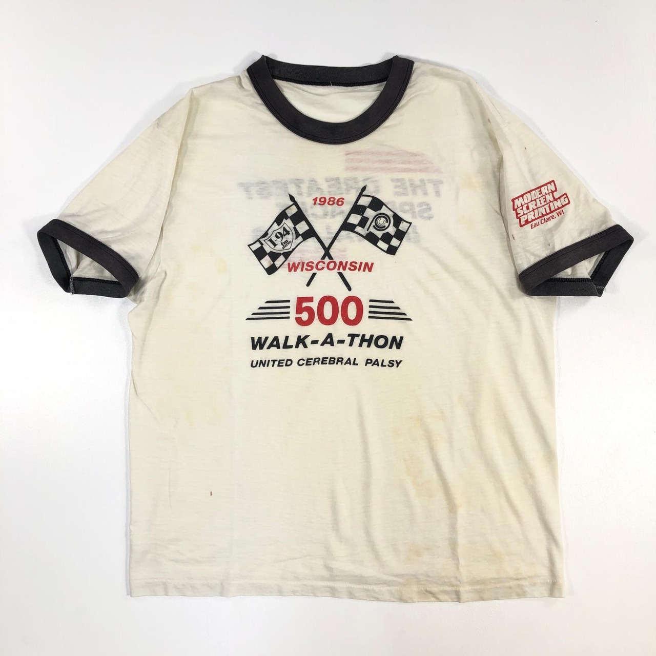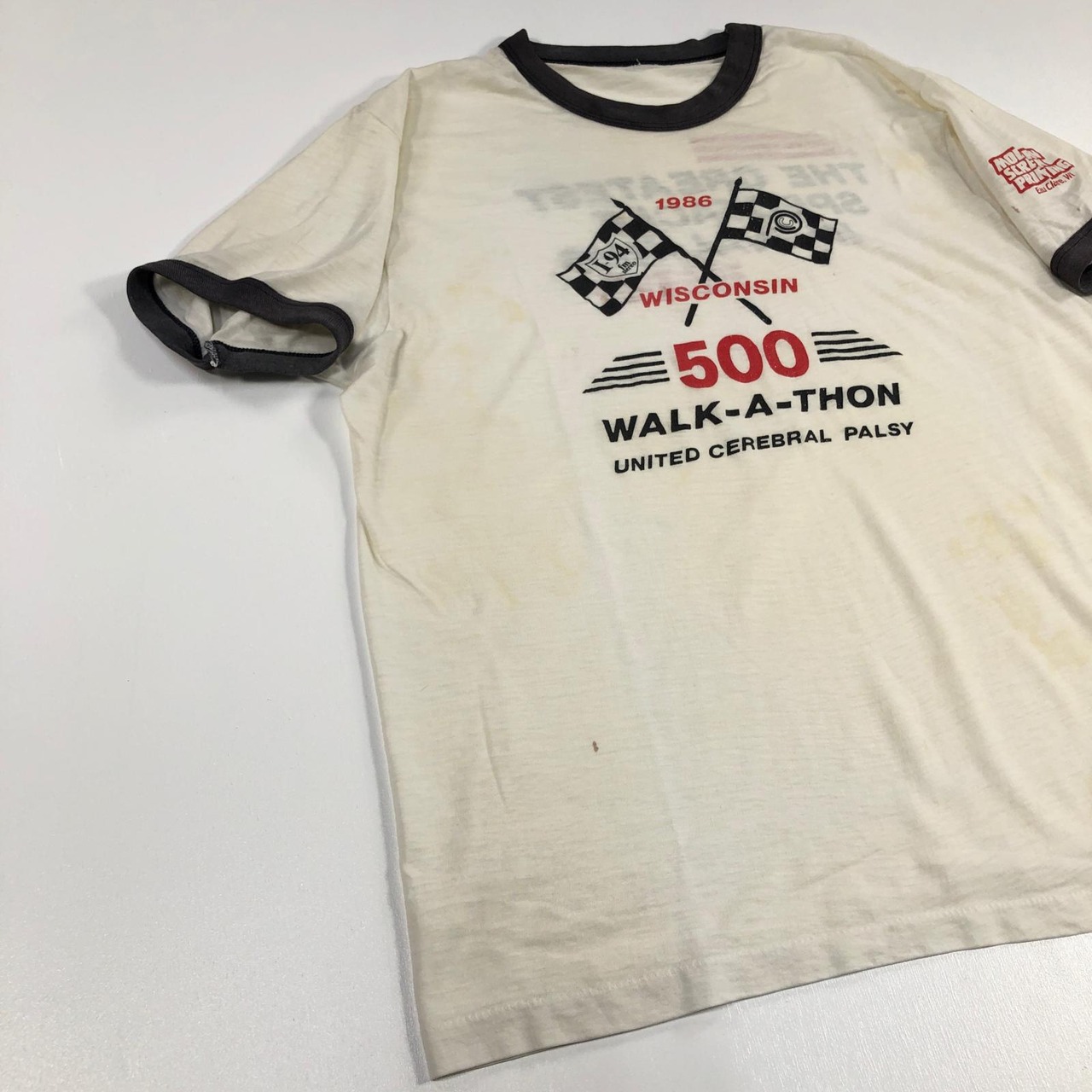 1986 WISCONSIN500 半袖Tシャツ リンガーT トリムT ホワイト