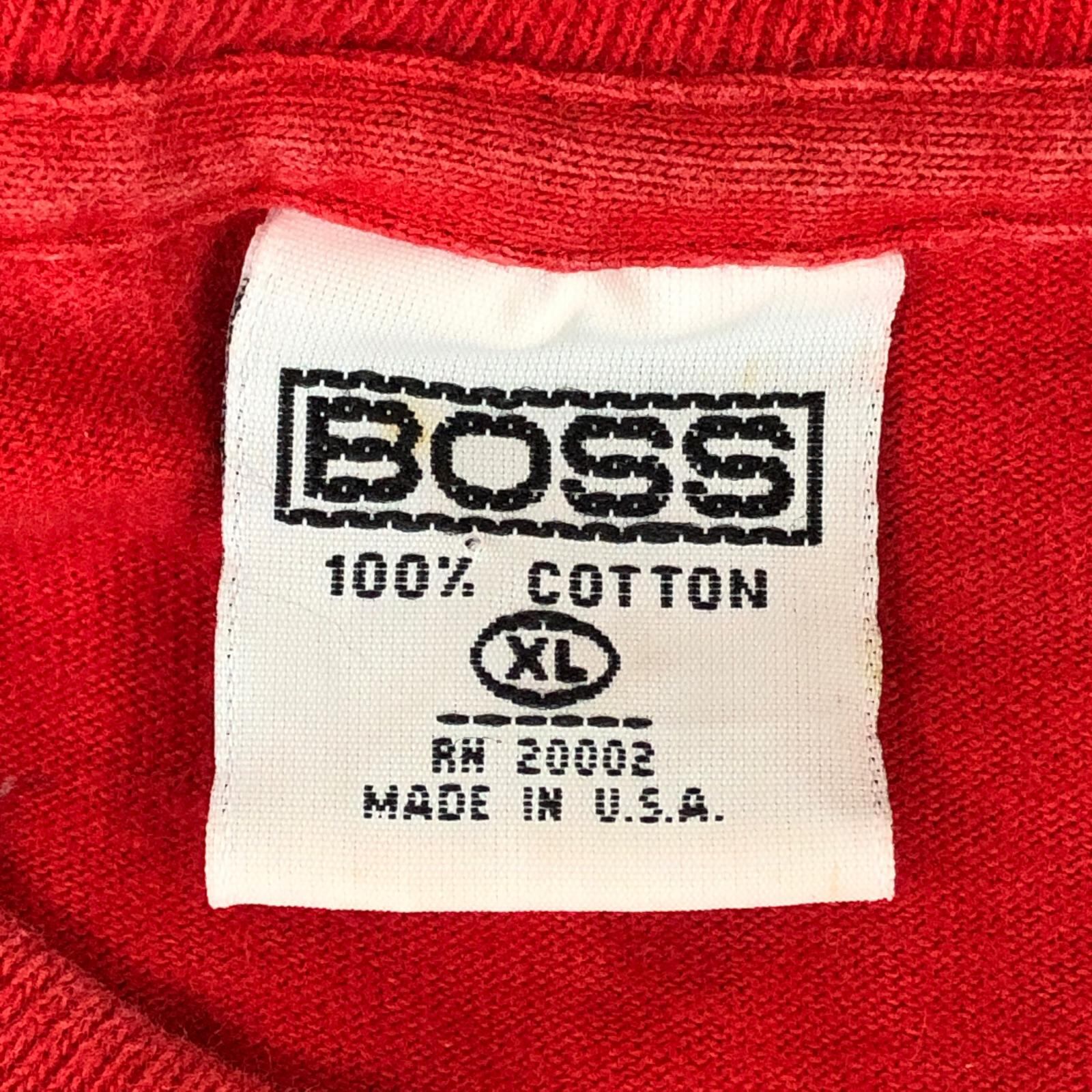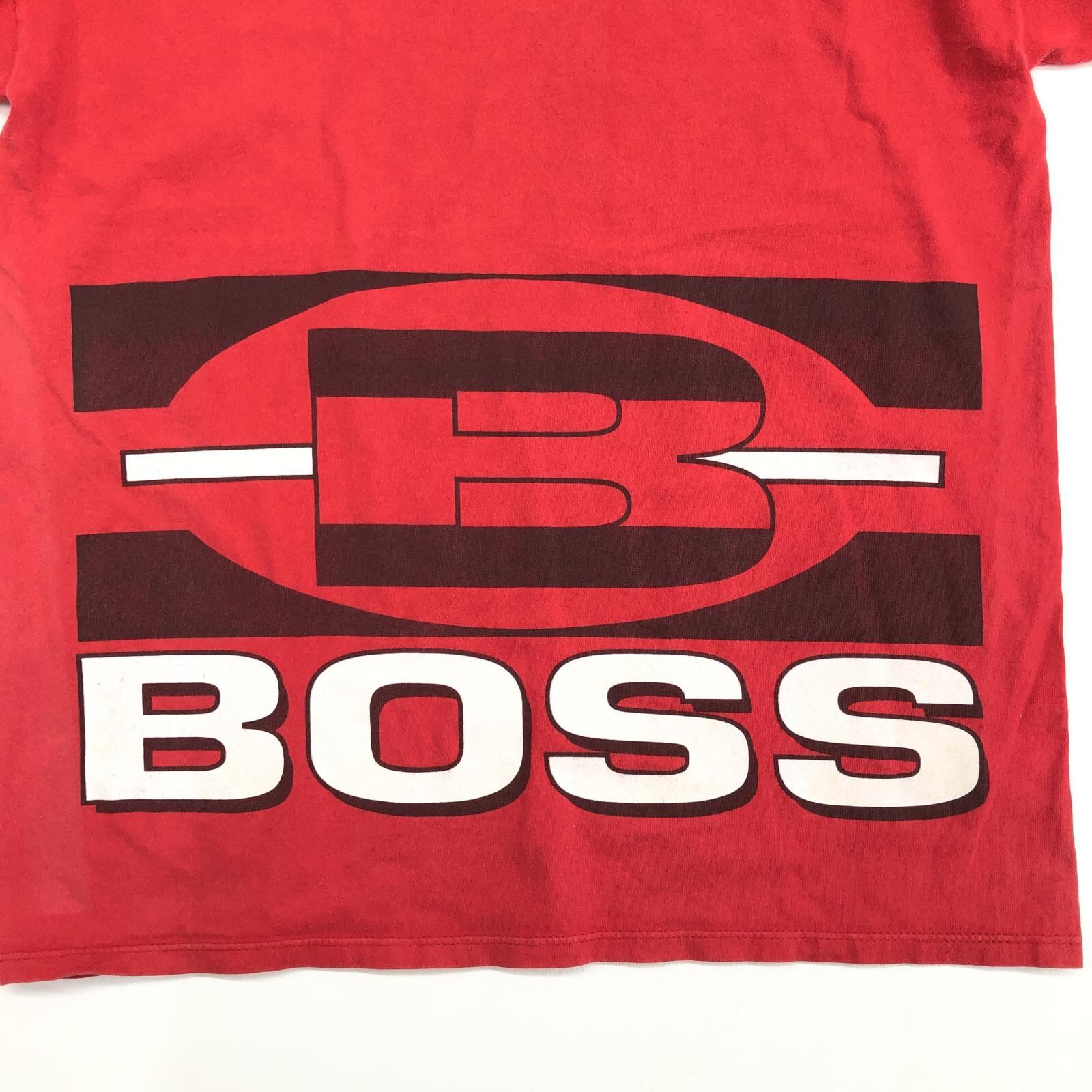 BOSS ボス 半袖Tシャツ 90年代 USA製 背面ロゴプリント 胸ロゴワンポイント ヴィンテージ レッド サイズ:XL