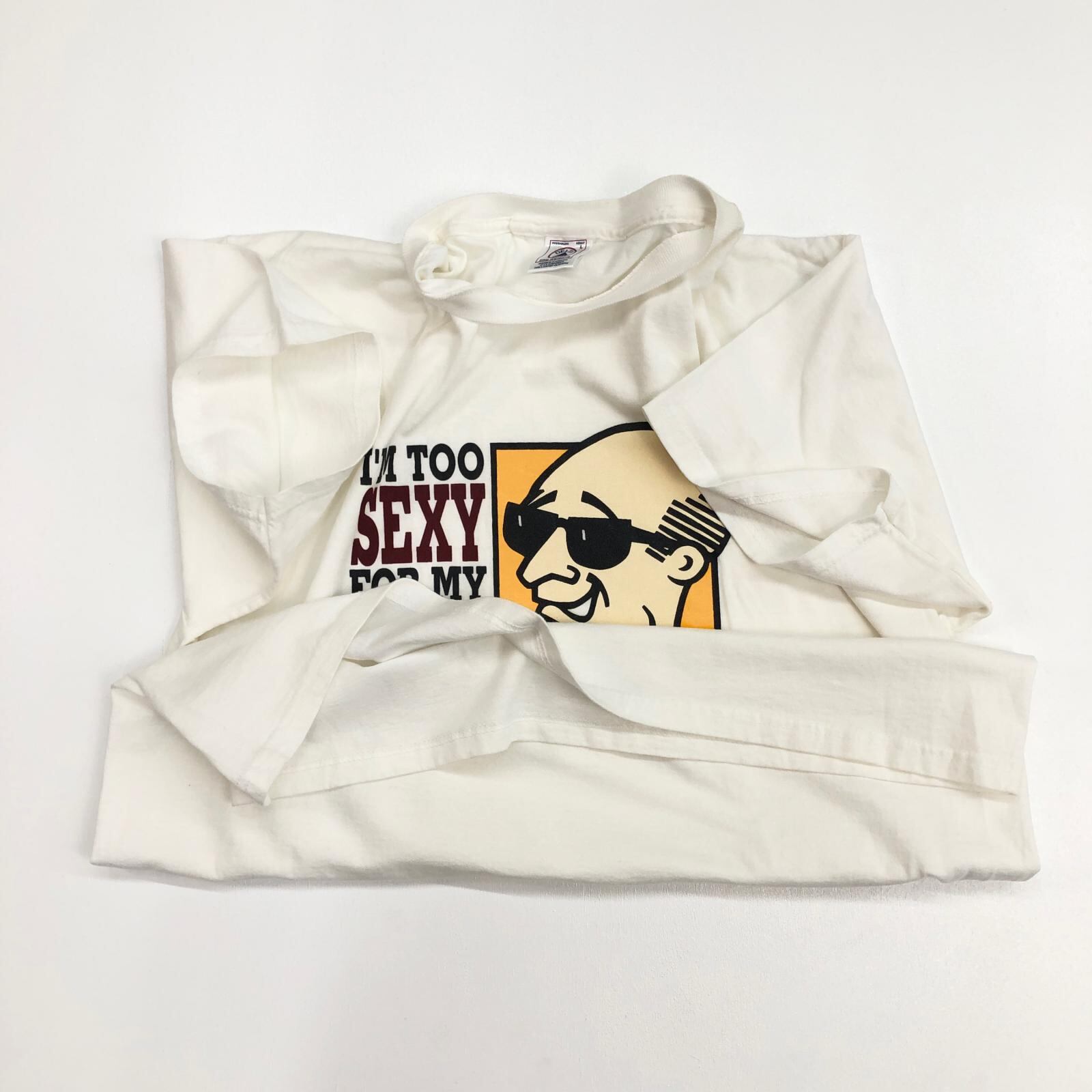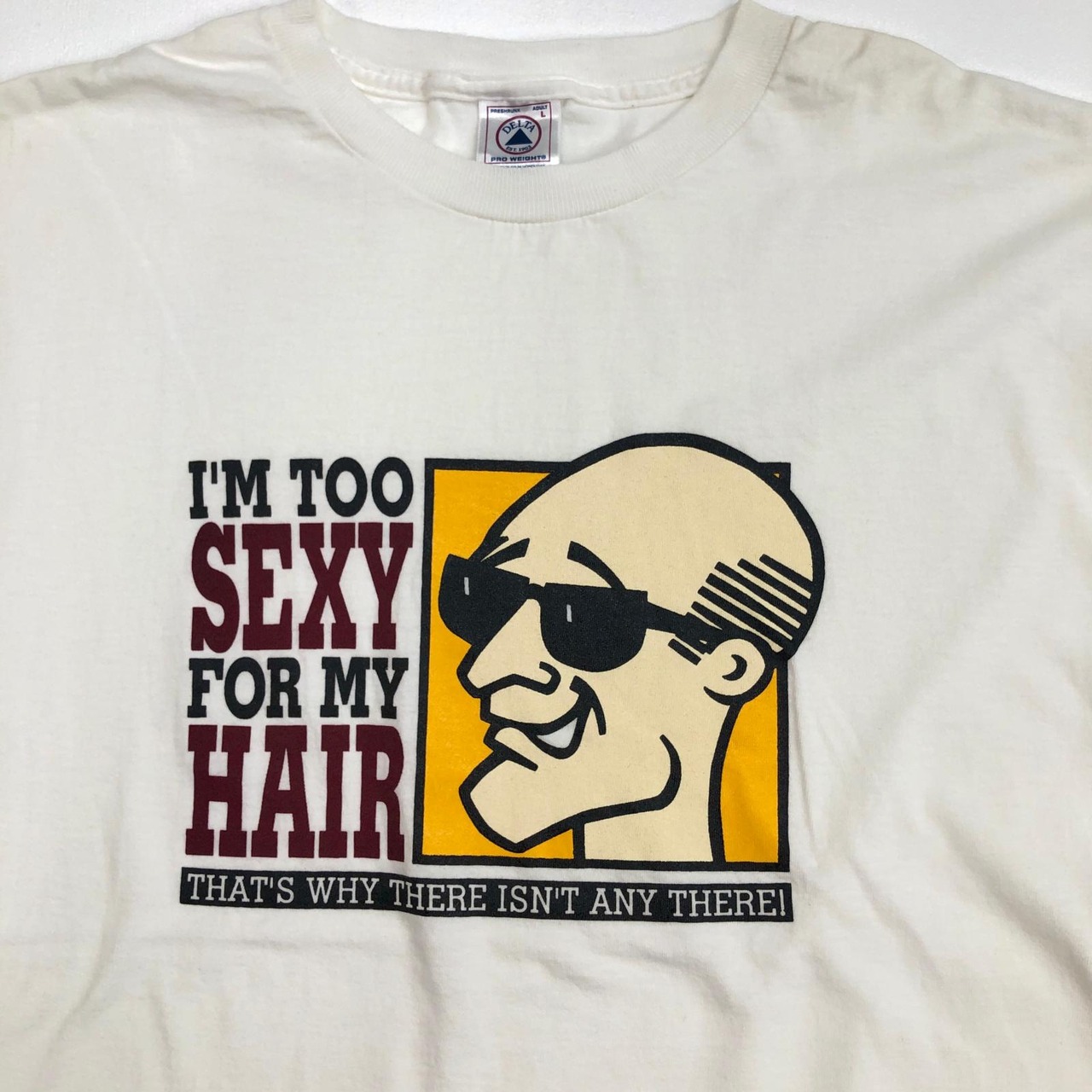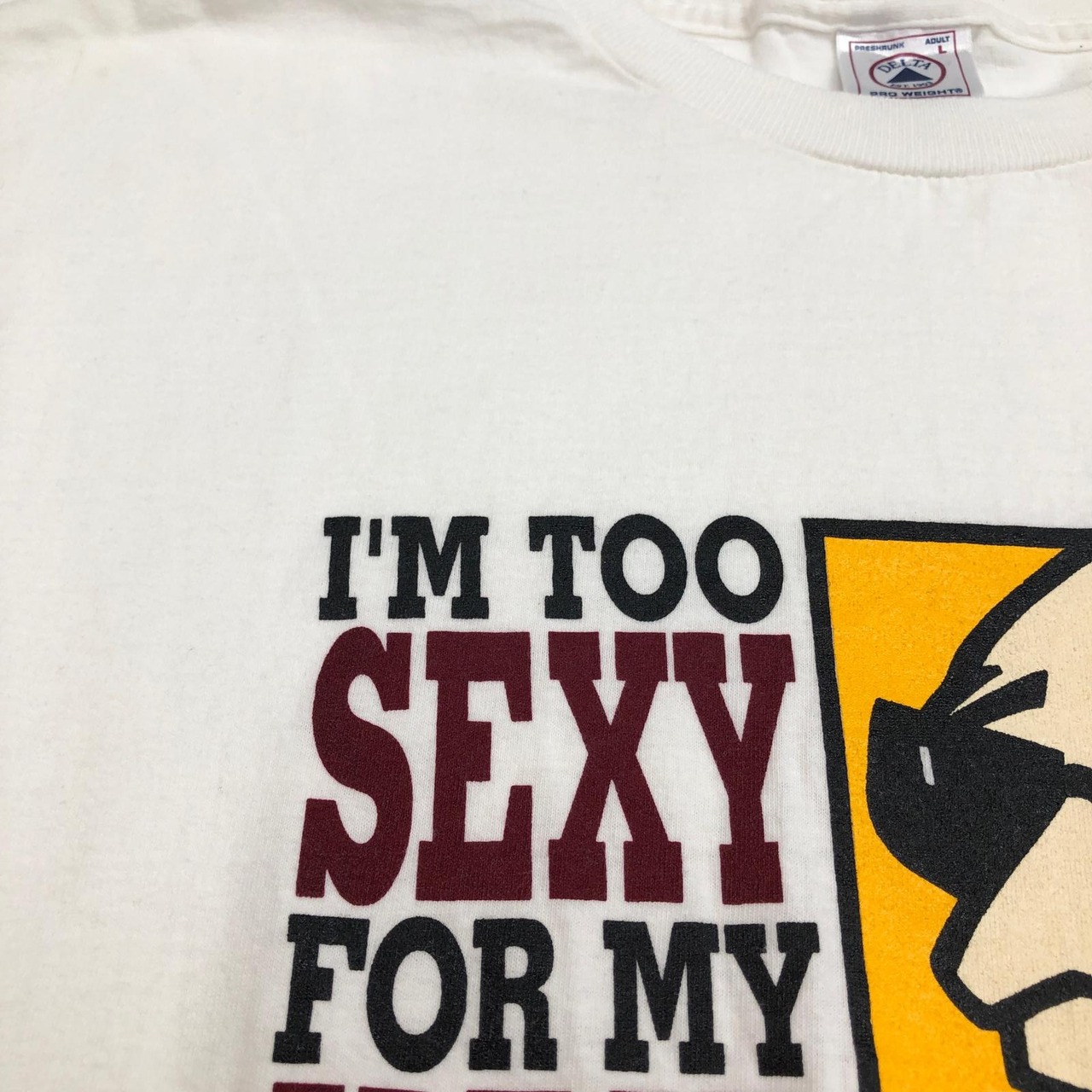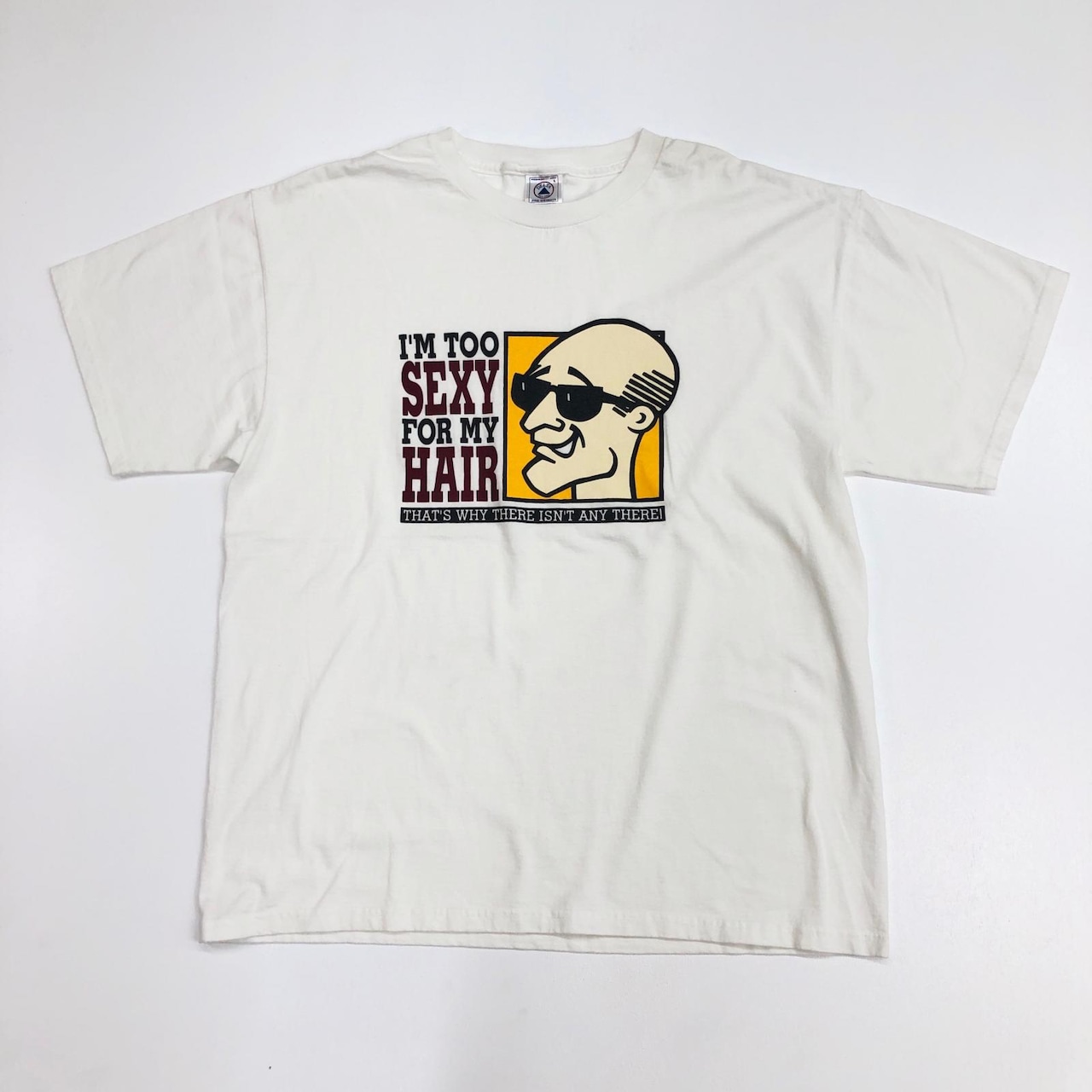 DELTA デルタ 00年代 I'M TOO SEXY FOR MY HAIR 半袖Tシャツ ハゲオヤジ 前面プリント ホワイト サイズ:L