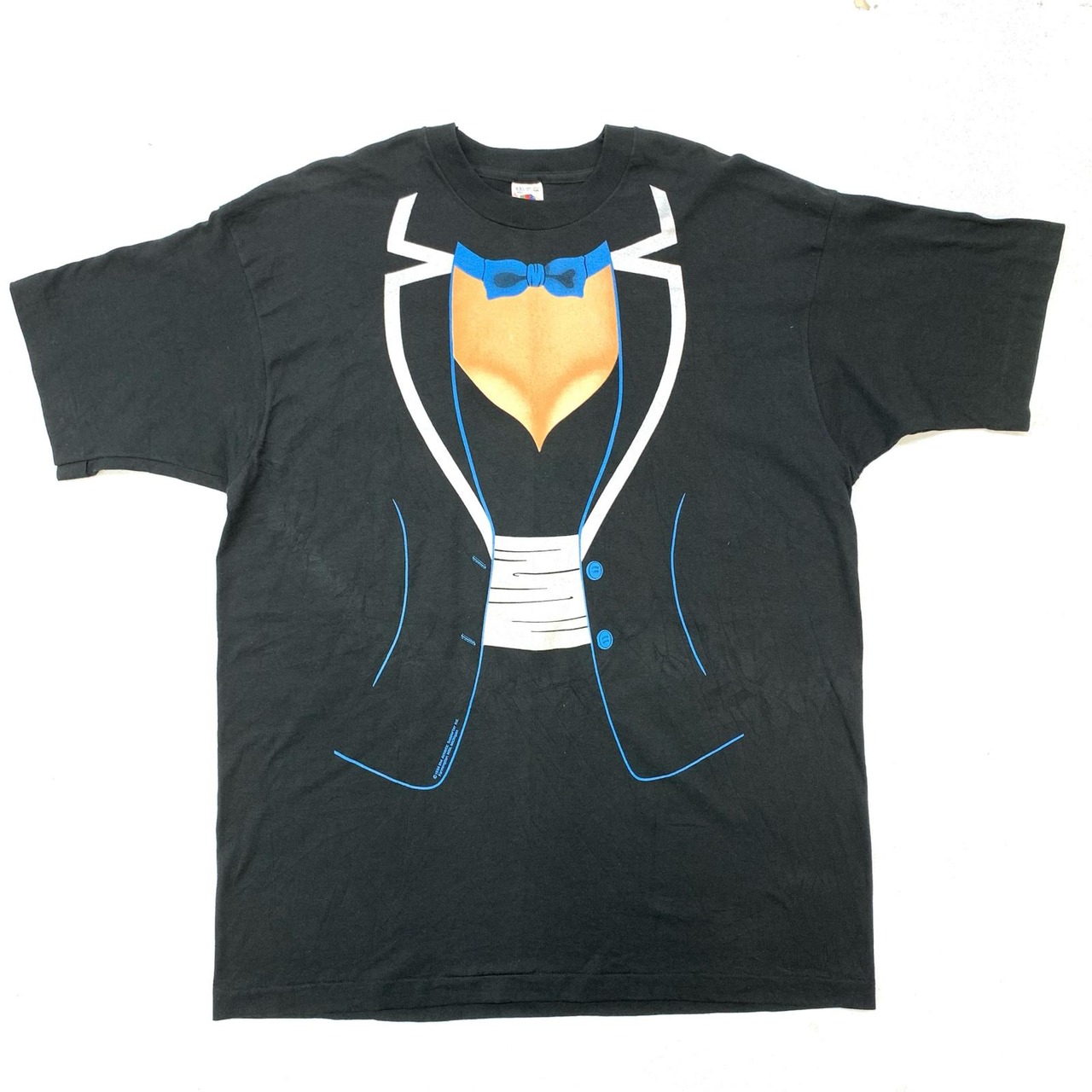 FRUIT OF THE LOOM|フルーツオブザルーム 半袖Tシャツ 80年代 だまし絵プリント タキシード シングルステッチ ブラック サイズ:XXL