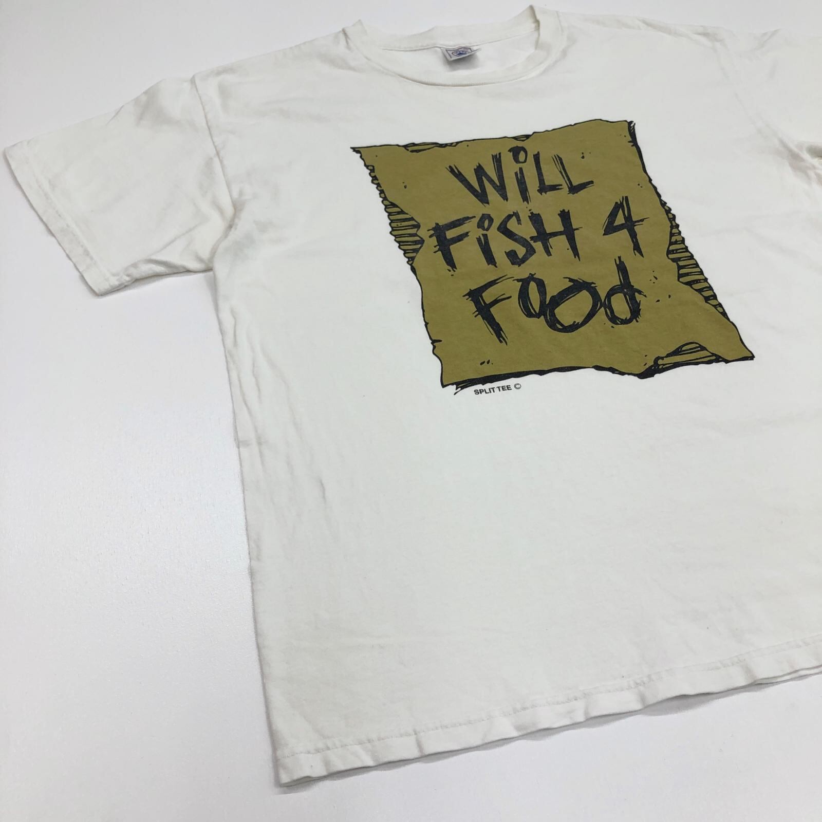 DELTA デルタ 00年代 半袖Tシャツ WILL FISH 4 FOOD 前面プリント ホワイト サイズ:L