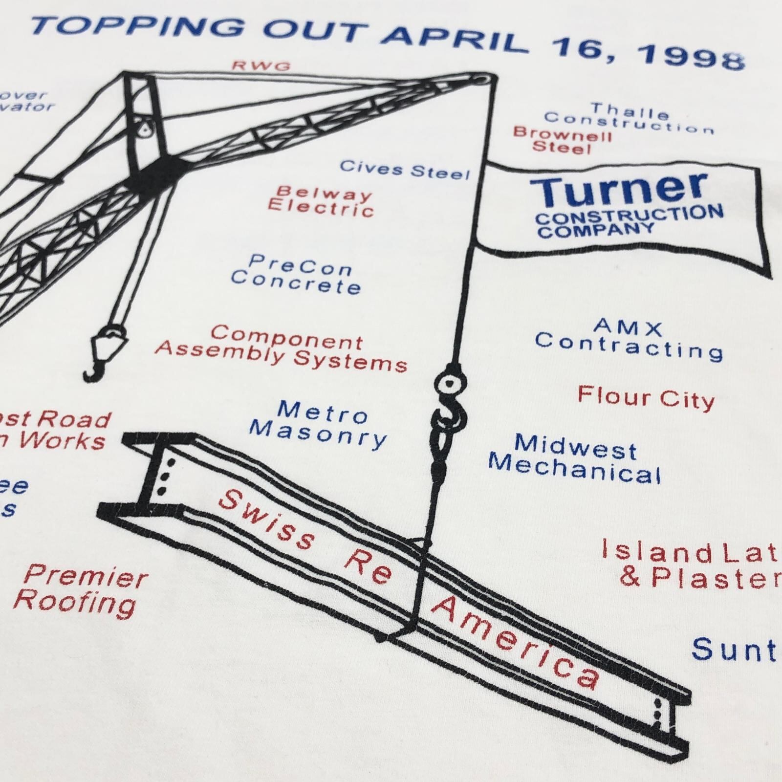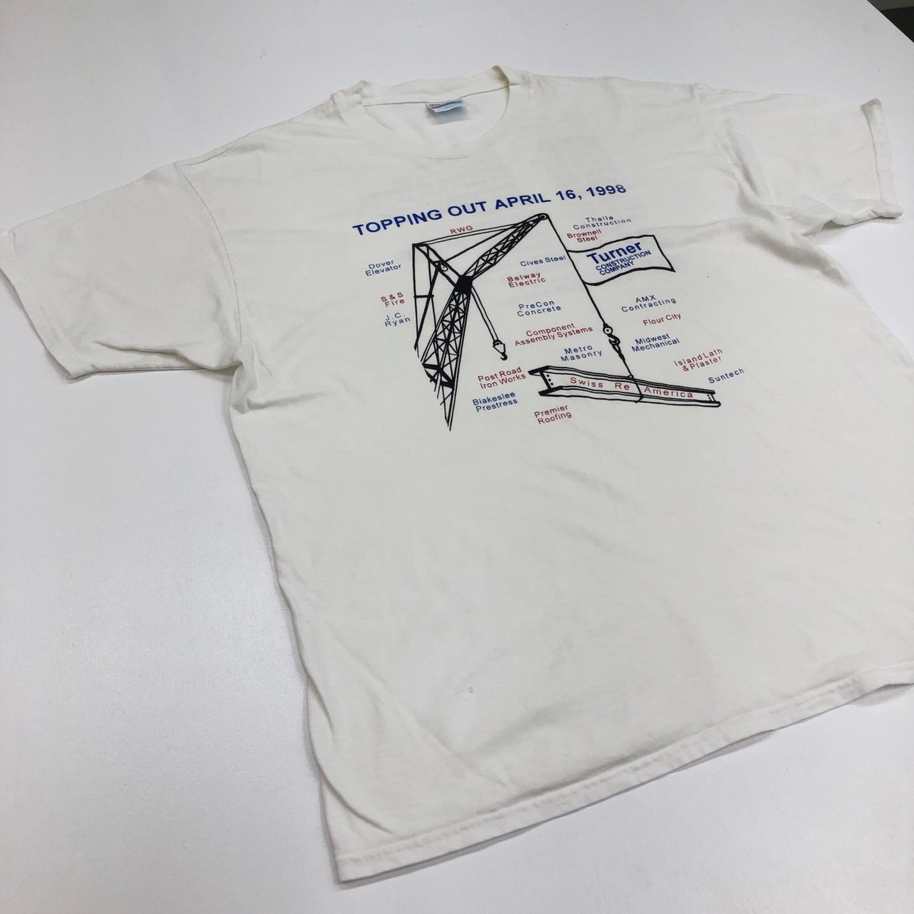 Hanes ヘインズ 半袖Tシャツ 90年代 TOPPING OUT APRIL 16, 1998 Turner 両面プリント ホワイト サイズ:XL
