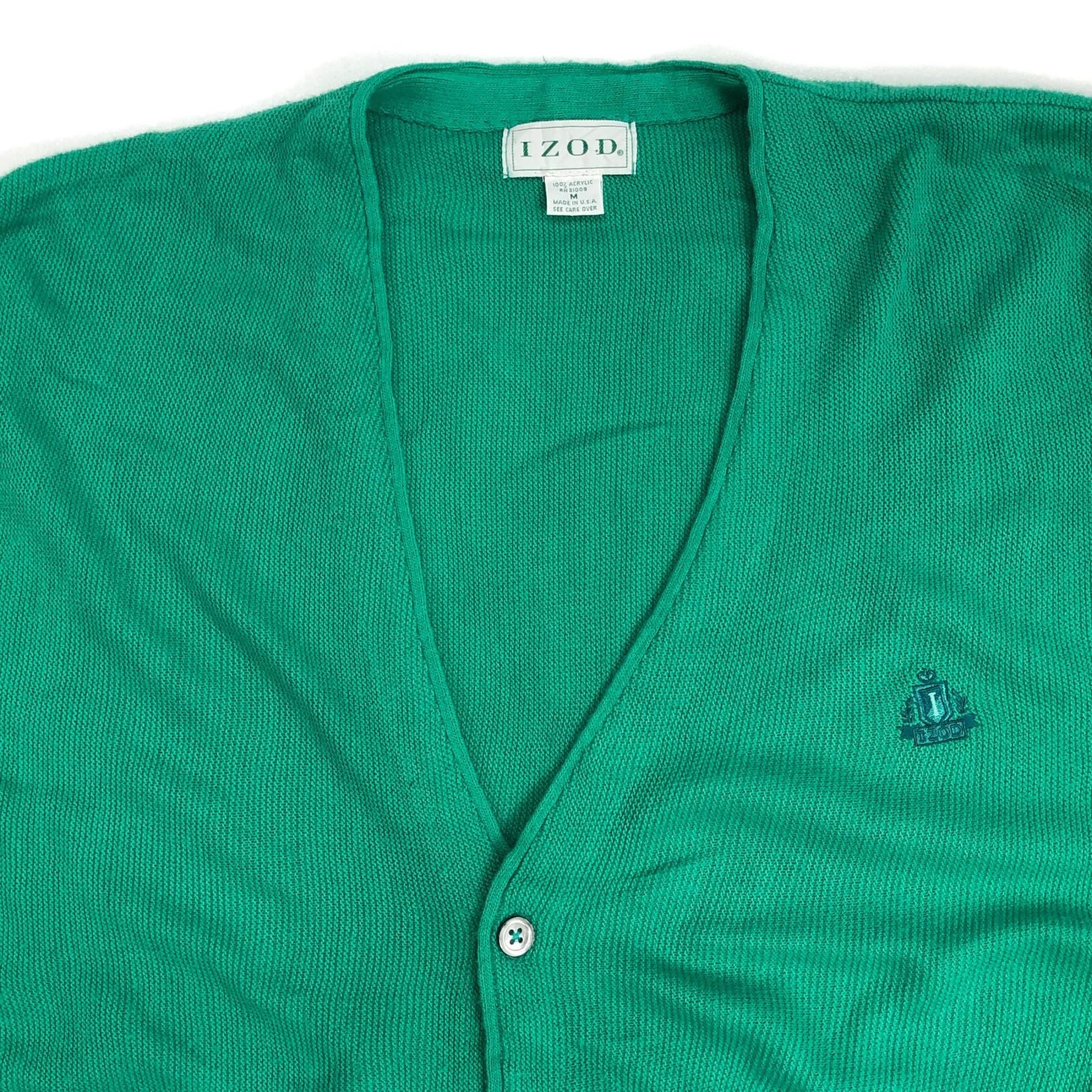 IZOD アイゾッド アクリルカーディガン ワンポイント刺 グリーン サイズ:M