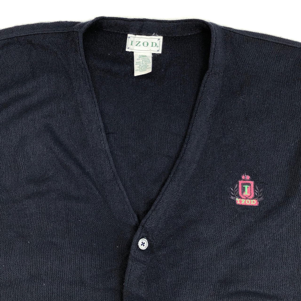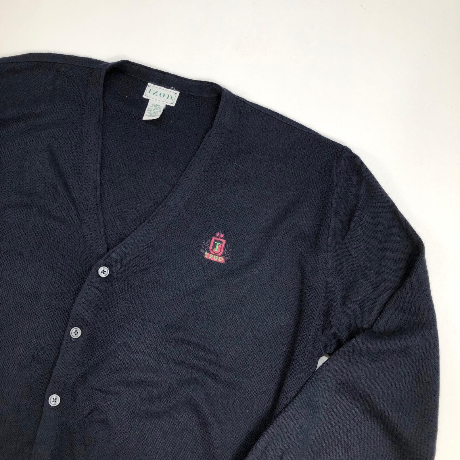 IZOD アイゾッド アクリルカーディガン ワンポイント刺繍 ネイビー サイズ:L