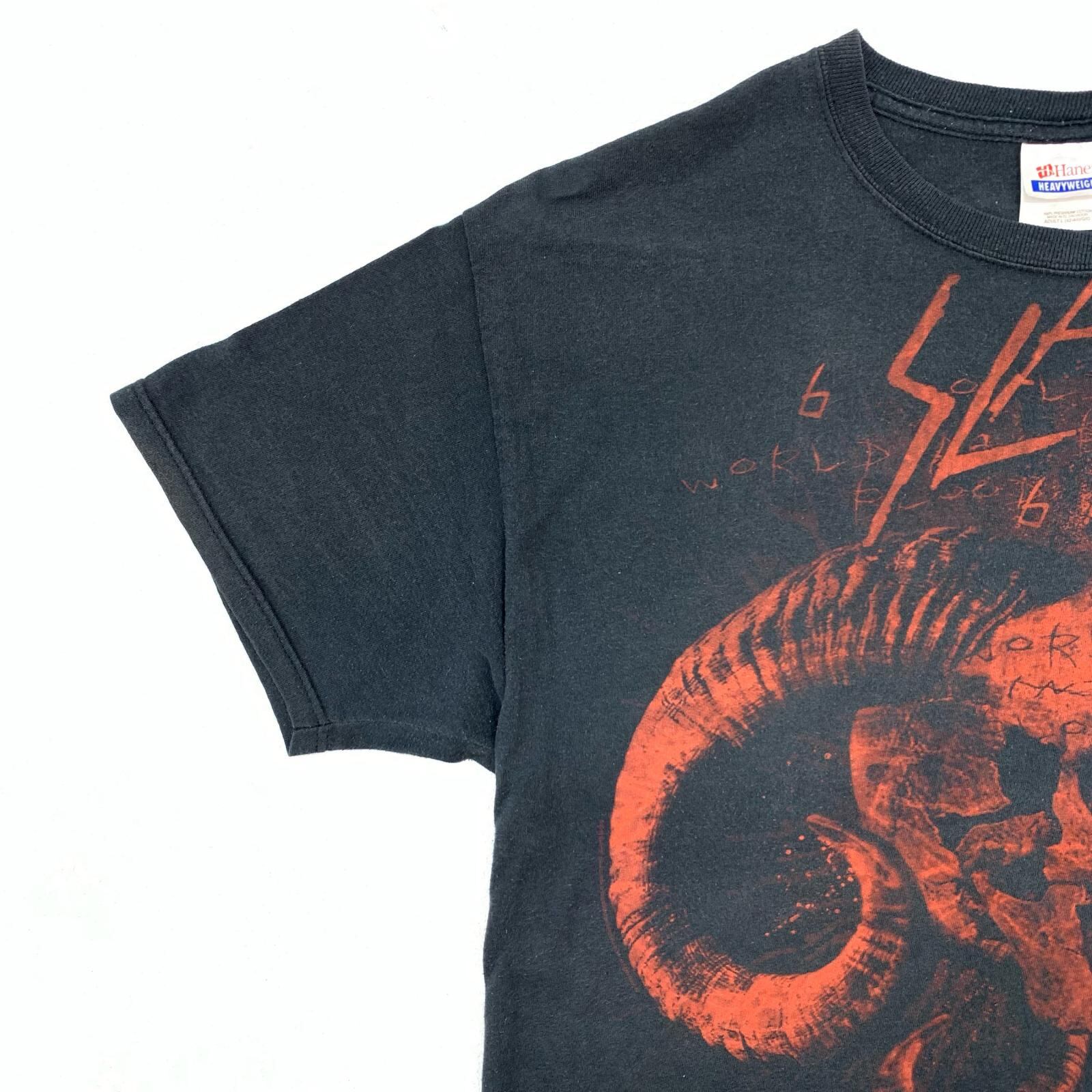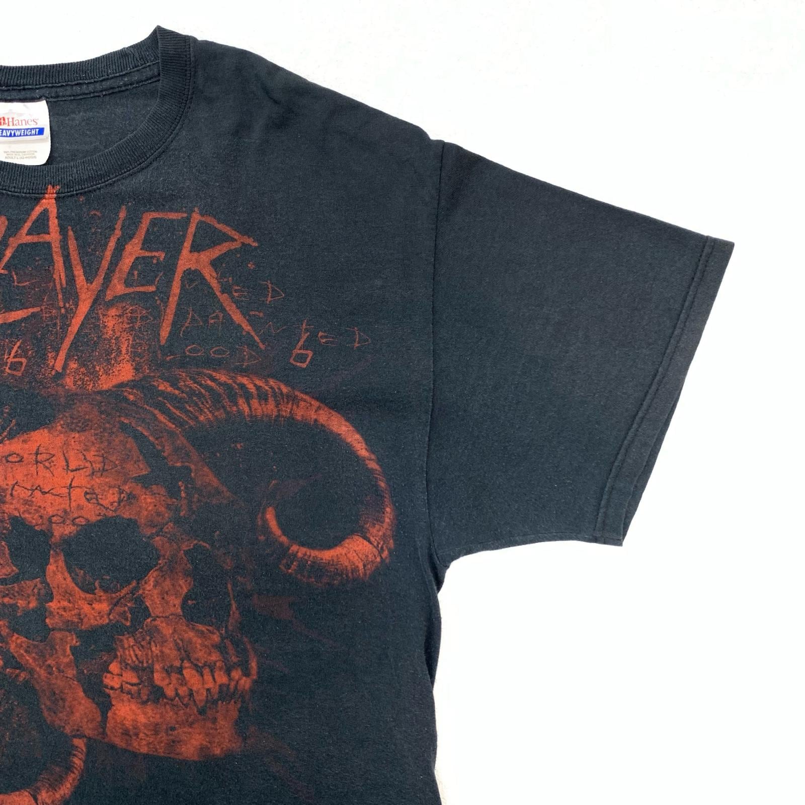 Hanes HEAVYWEIGHT ヘインズ 半袖Tシャツ SLAYER TOUR Tee 両面プリント バンド スカル ブラック サイズ:L