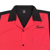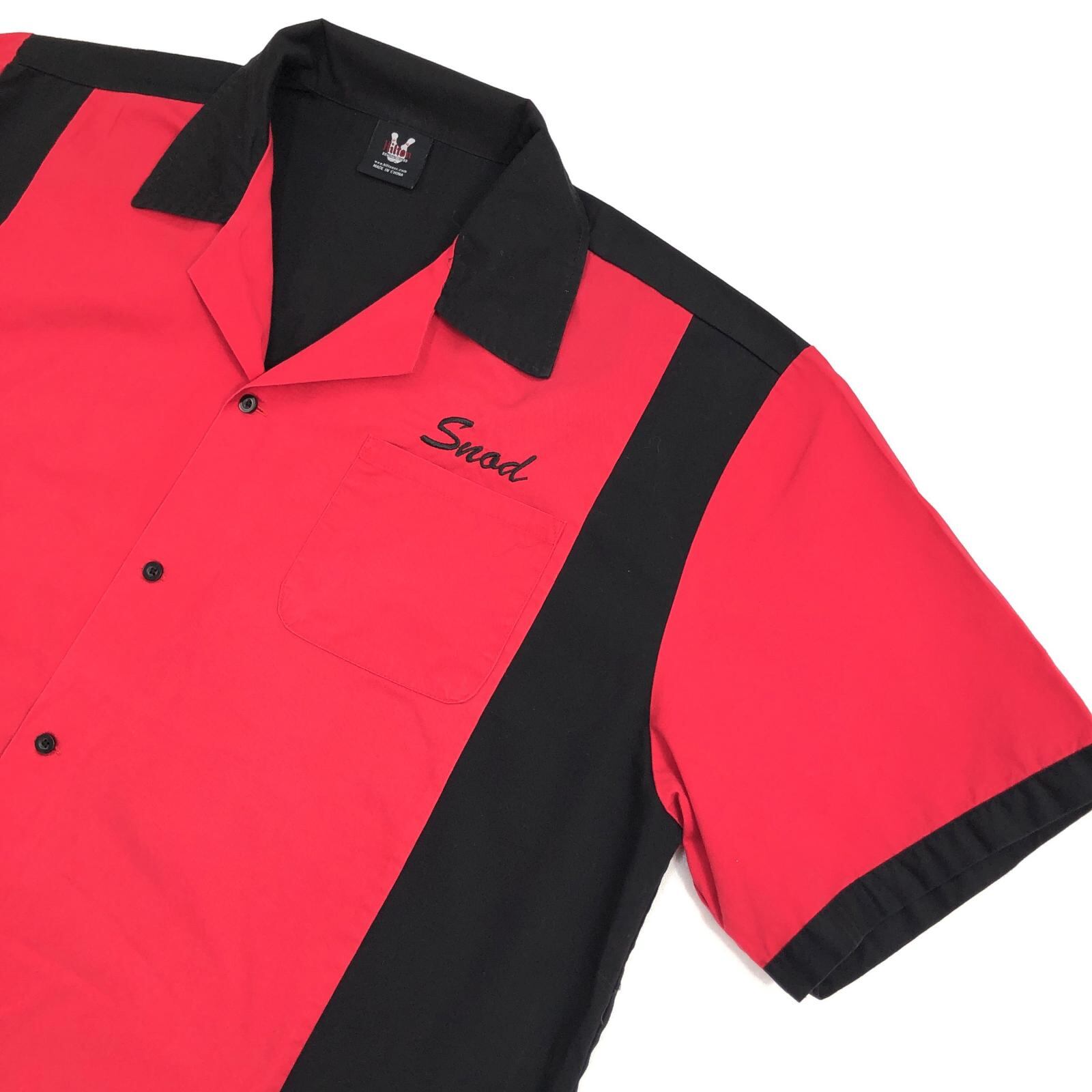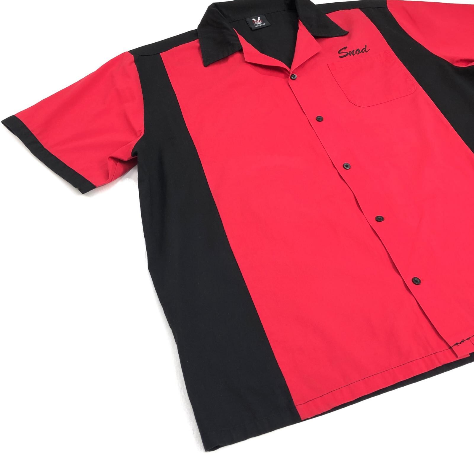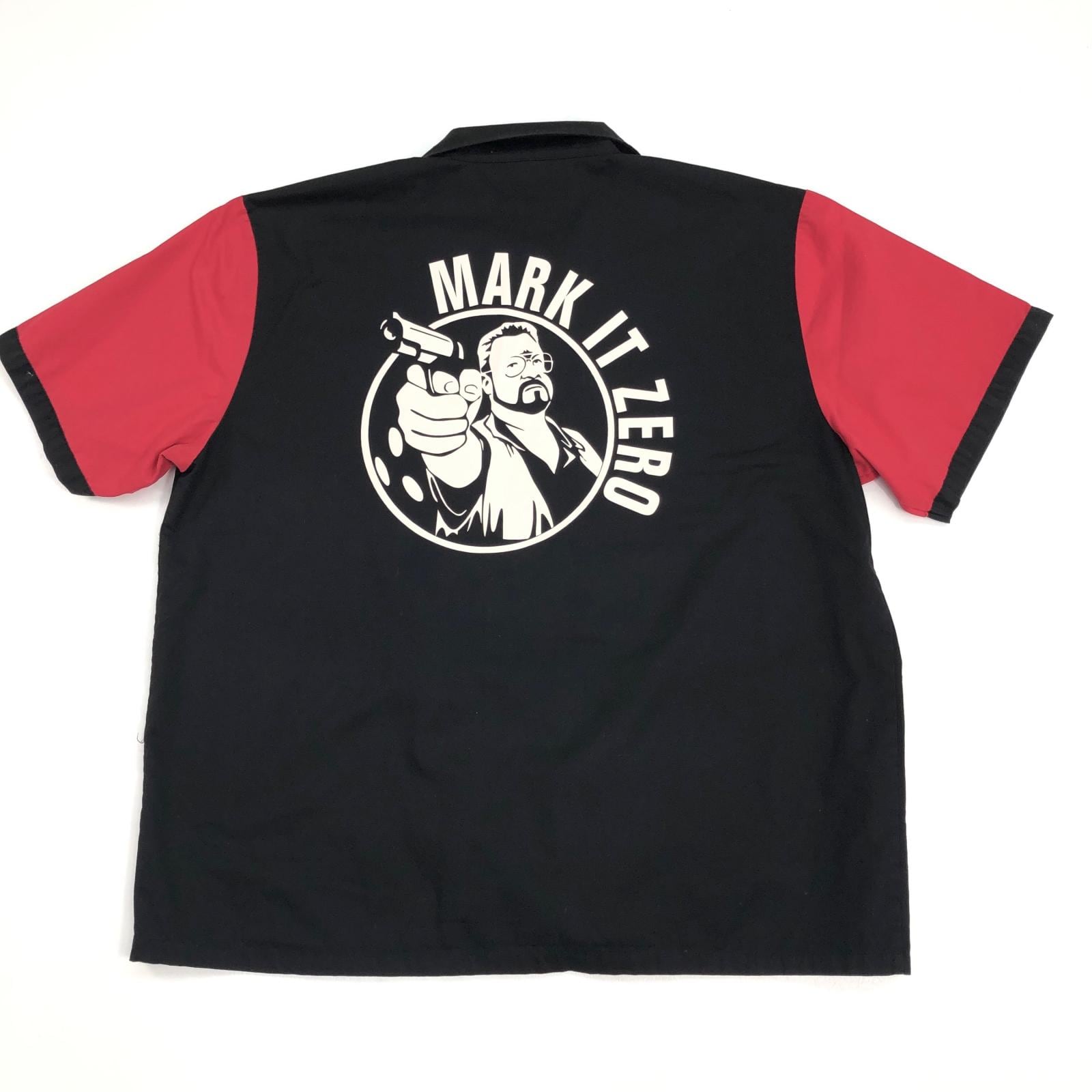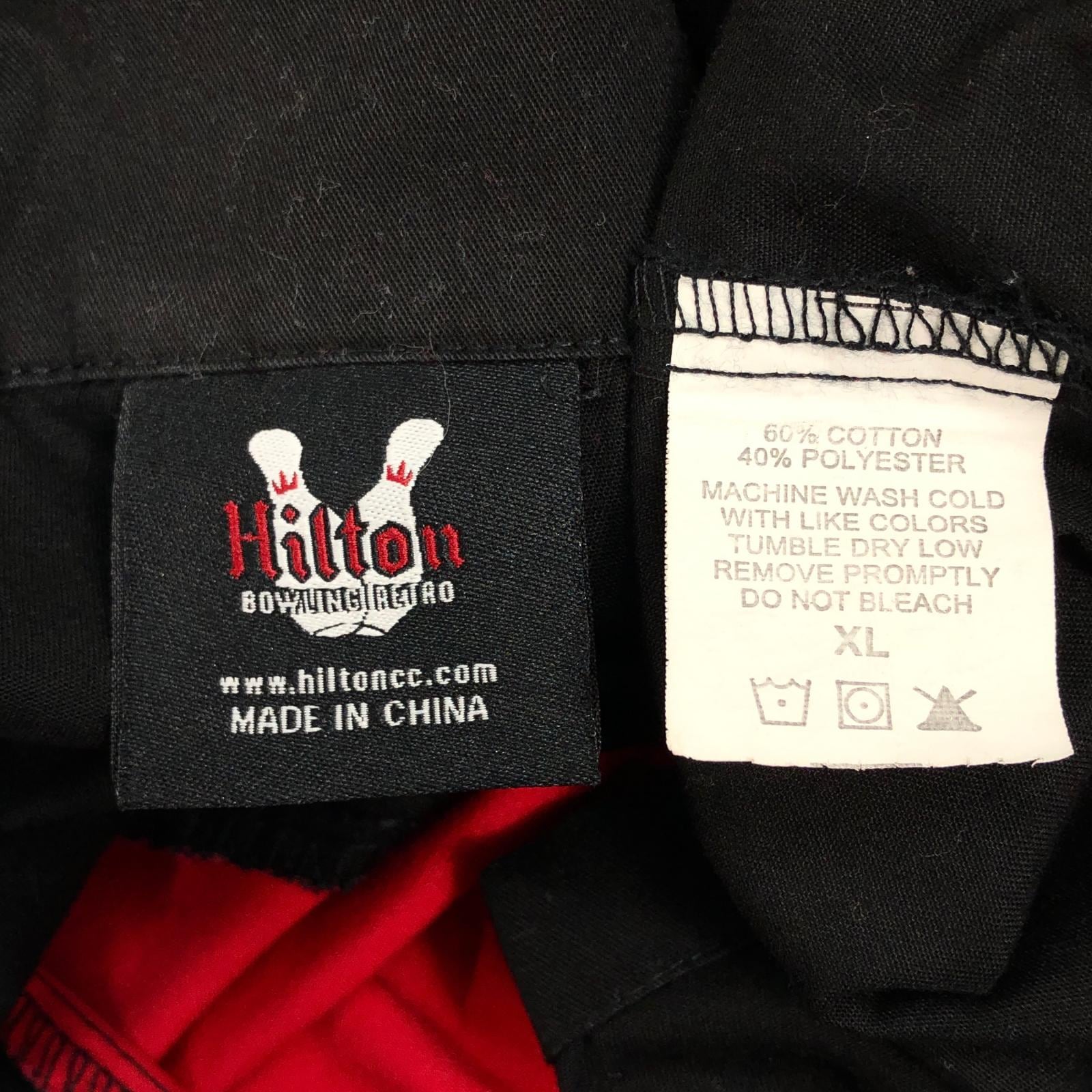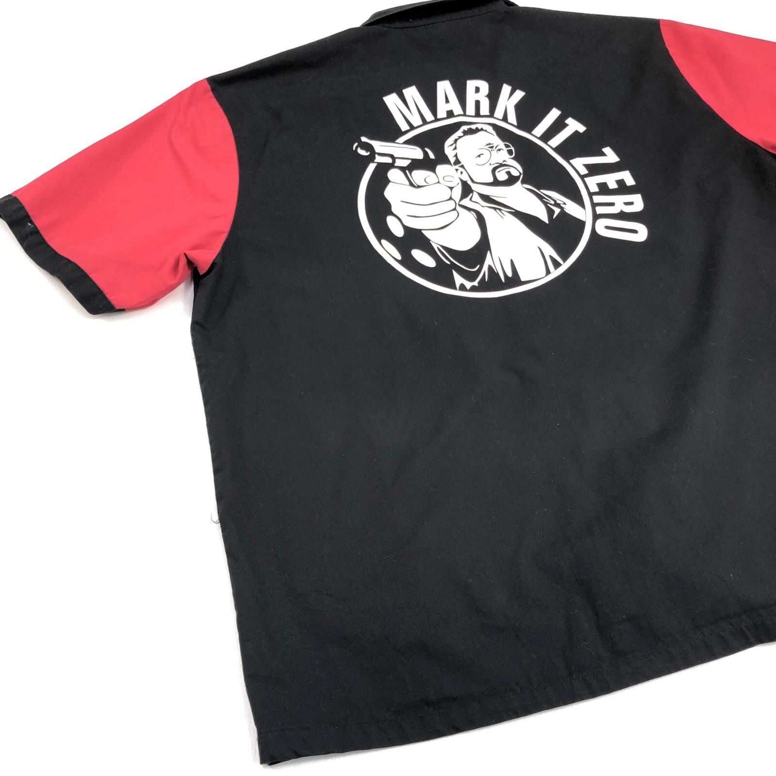 00年代 Hilton ヒルトン MARK IT ZERO ボーリング ワークシャツ 背面プリント ワンポイント刺繍 レッド サイズ:XL