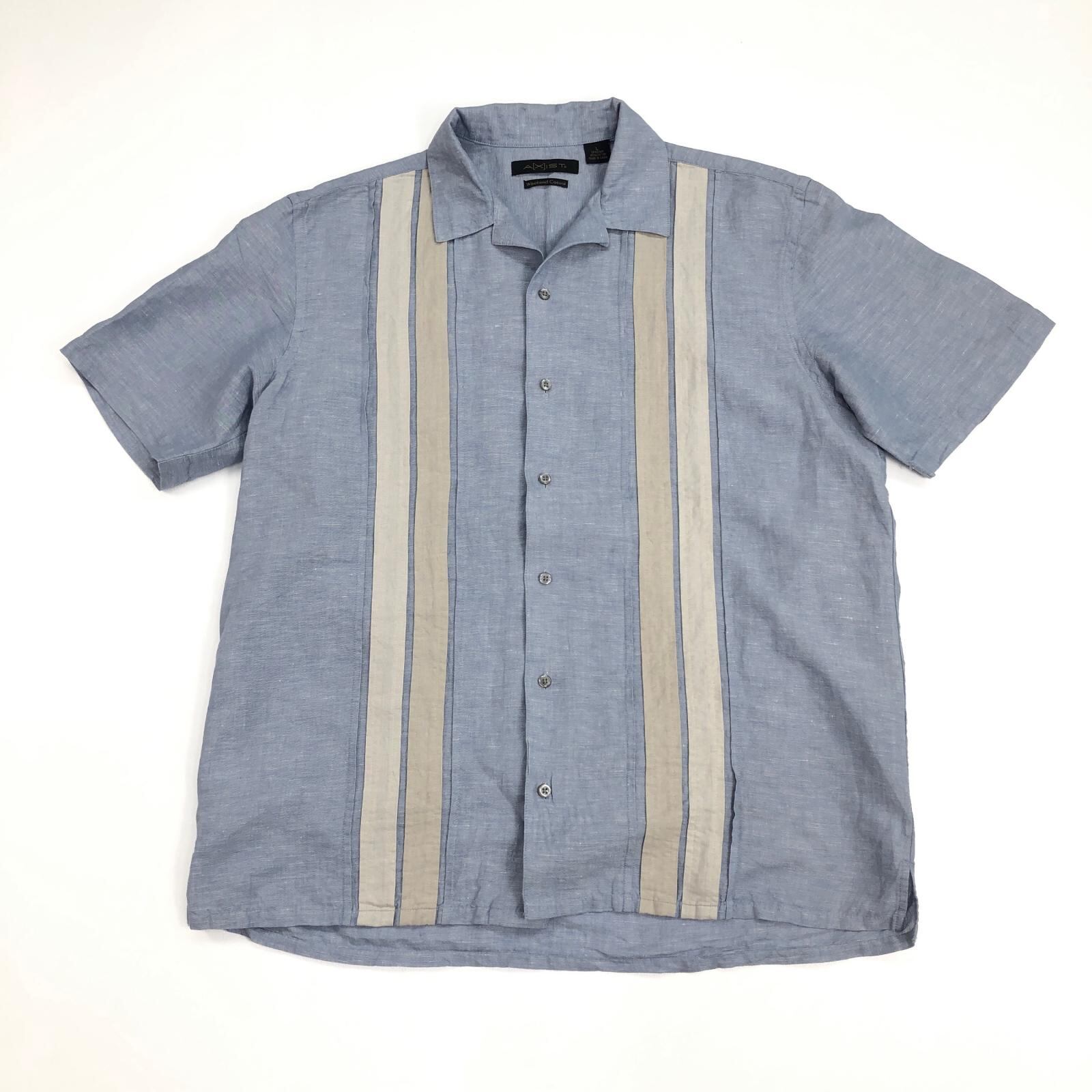AXIST アグジスト Weekend Casual 半袖シャツ リネン混 オープンカラー ブルー サイズ:L