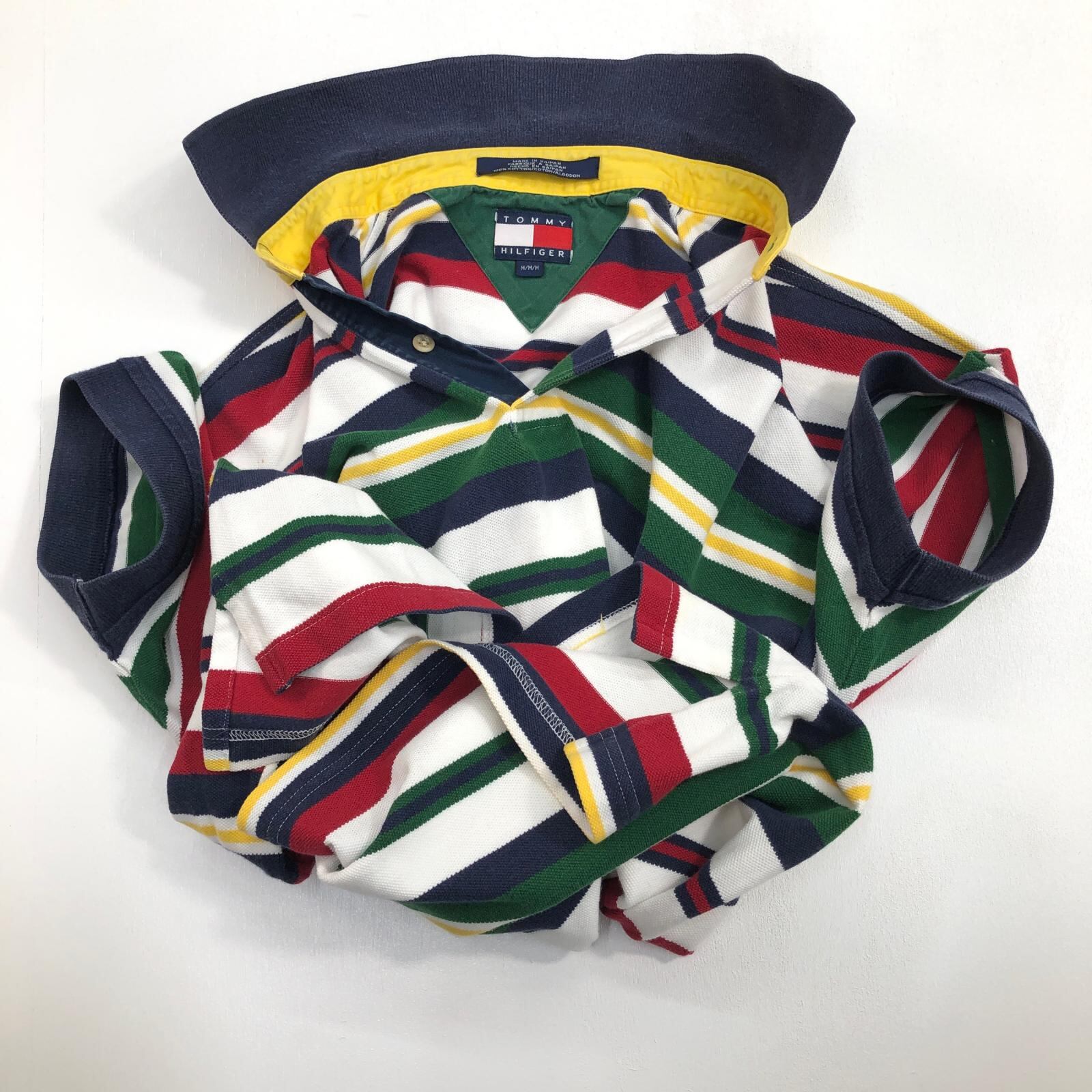 TOMMY HILFIGER トミーヒルフィガー ポロシャツ マルチボーダー 鹿の子 サイズ:M