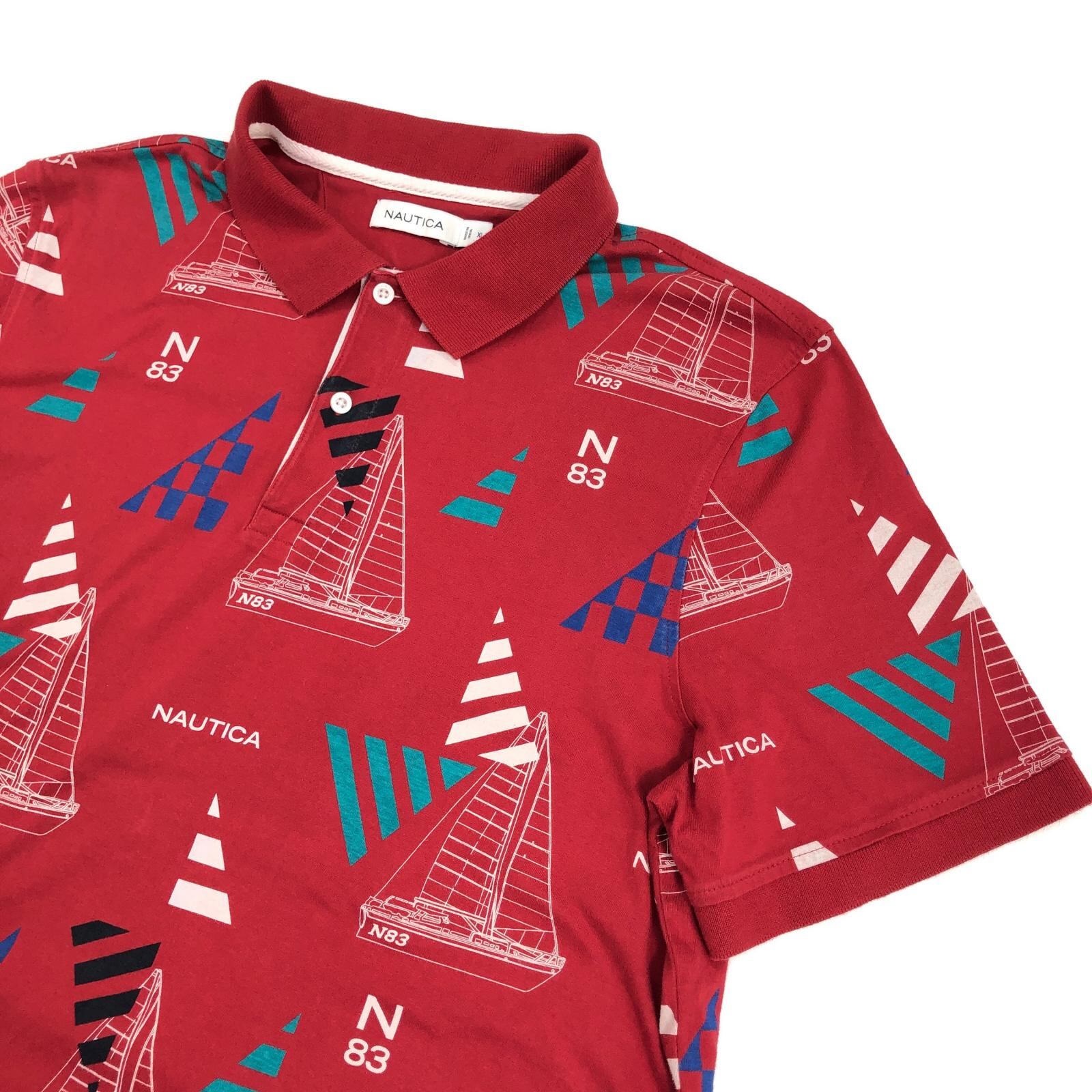 NAUTICA ノーティカ ポロシャツ ヨット柄 総柄 サイズ:XL