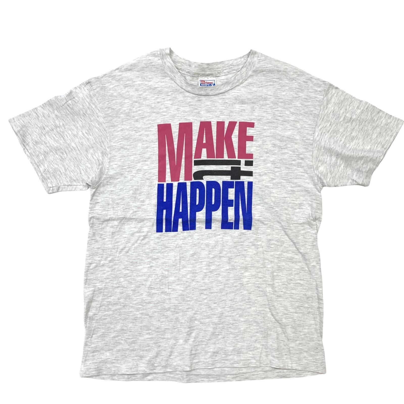Hanes ヘインズ 半袖Tシャツ 90年代 BEEFY MAKE IT HAPPEN メッセージ USA製 グレー サイズ:L