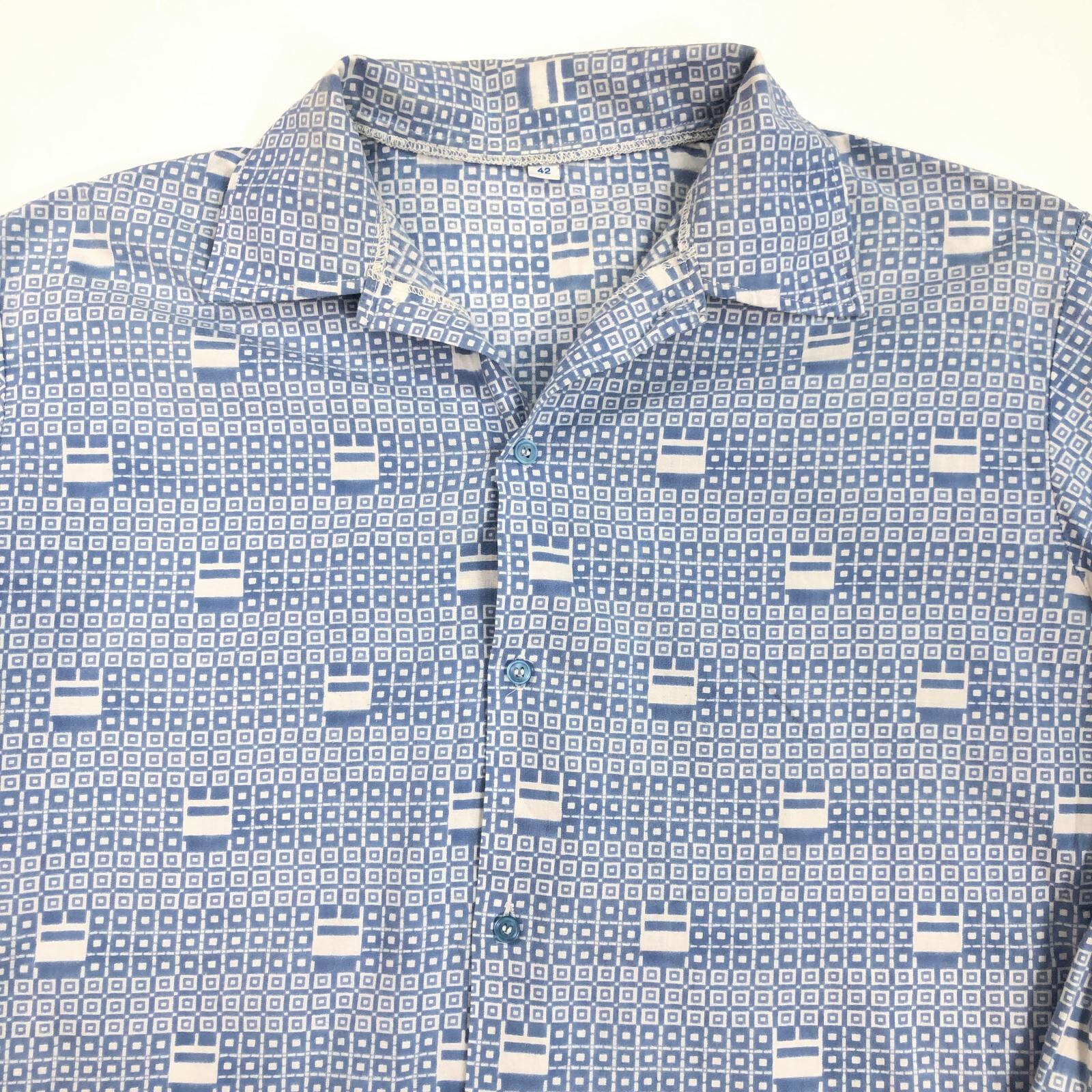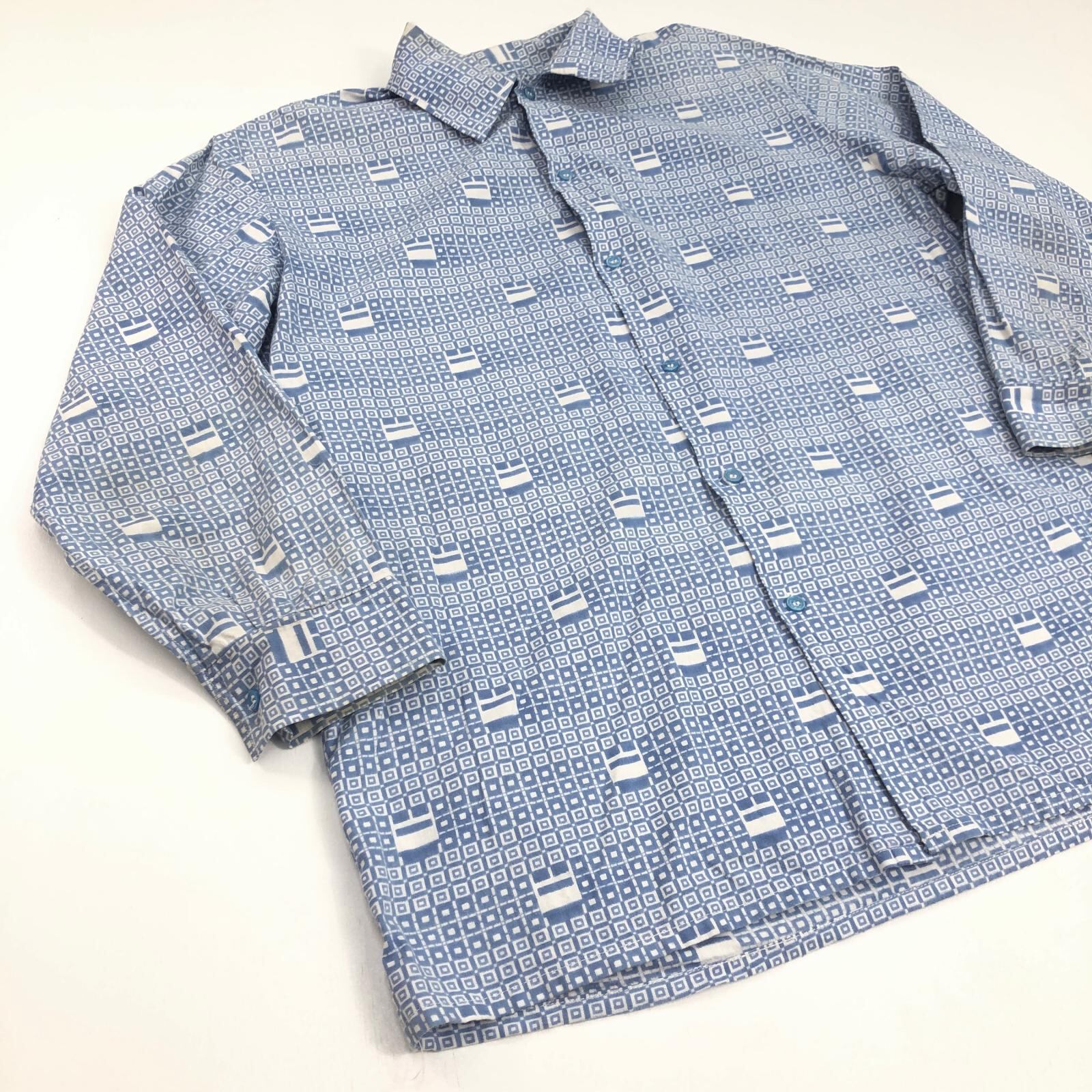 EURO VINTAGE 60-70年代 長袖シャツ 幾何学模様 パジャマシャツ