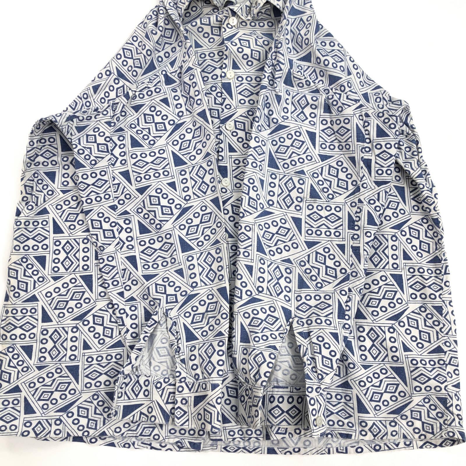 COTYMAY 60-70年代 長袖シャツ EURO VINTAGE 幾何学模様 パジャマシャツ VIETNAM製