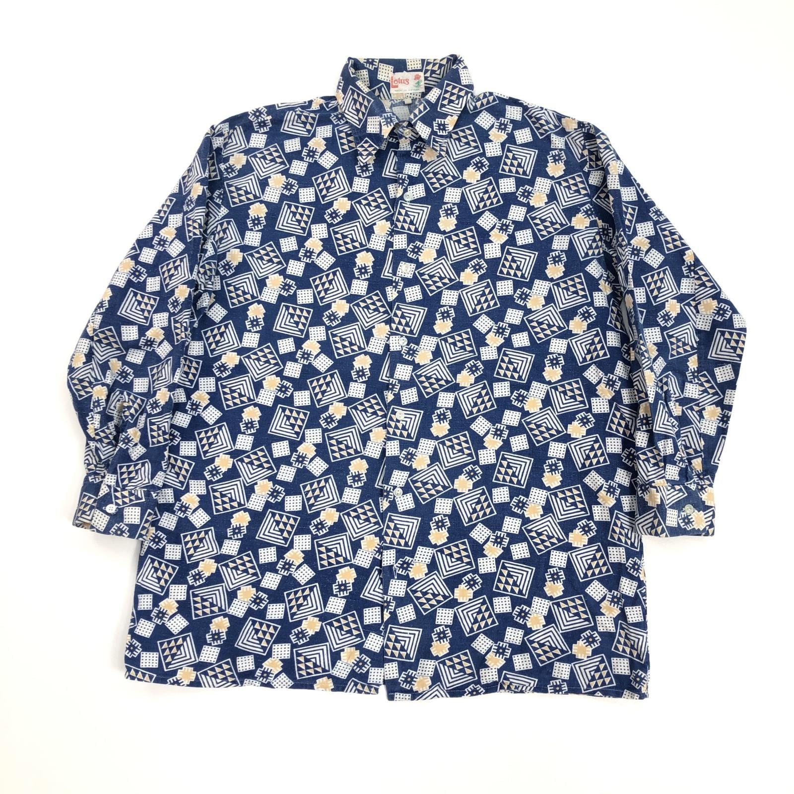Lotus 60-70年代 長袖シャツ 幾何学模様 VIETNAM製 EURO VINTAGE パジャマシャツ
