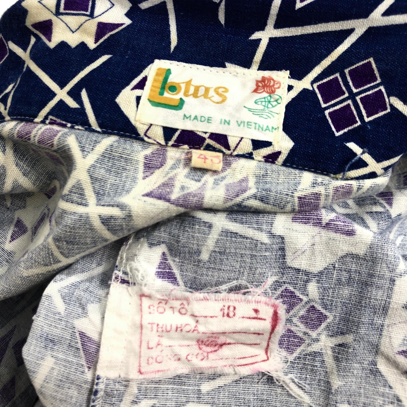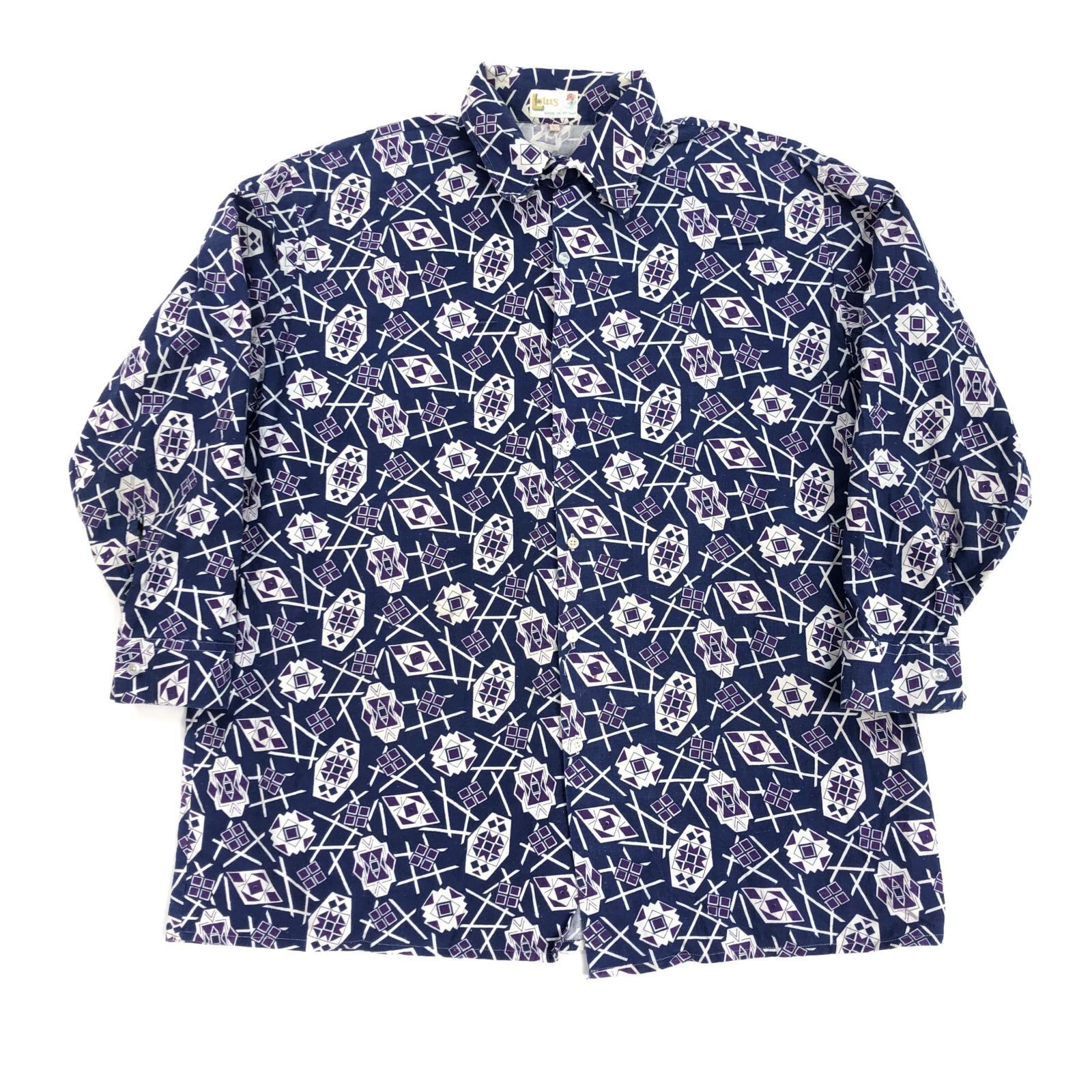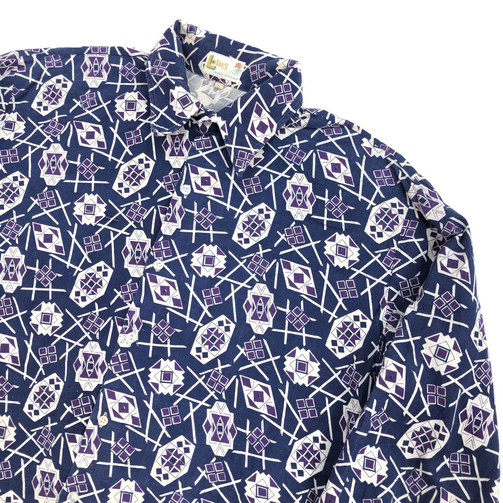 Lotus 60-70年代 長袖シャツ EURO VINTAGE 幾何学模様 VIETNAM製 パジャマシャツ