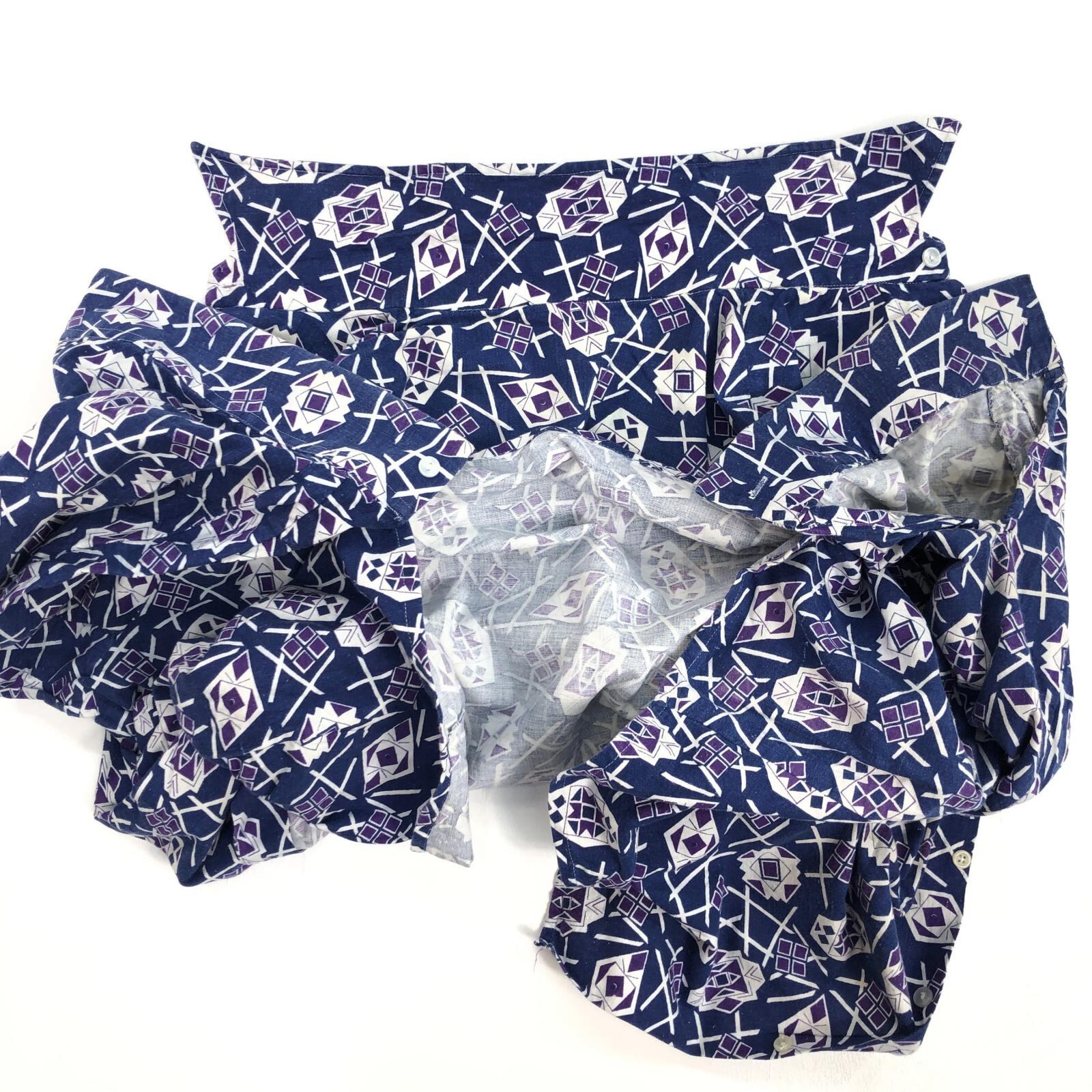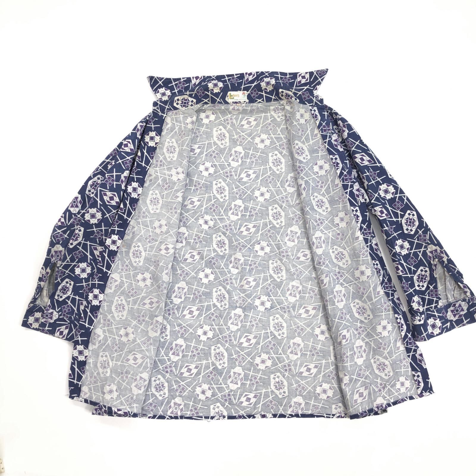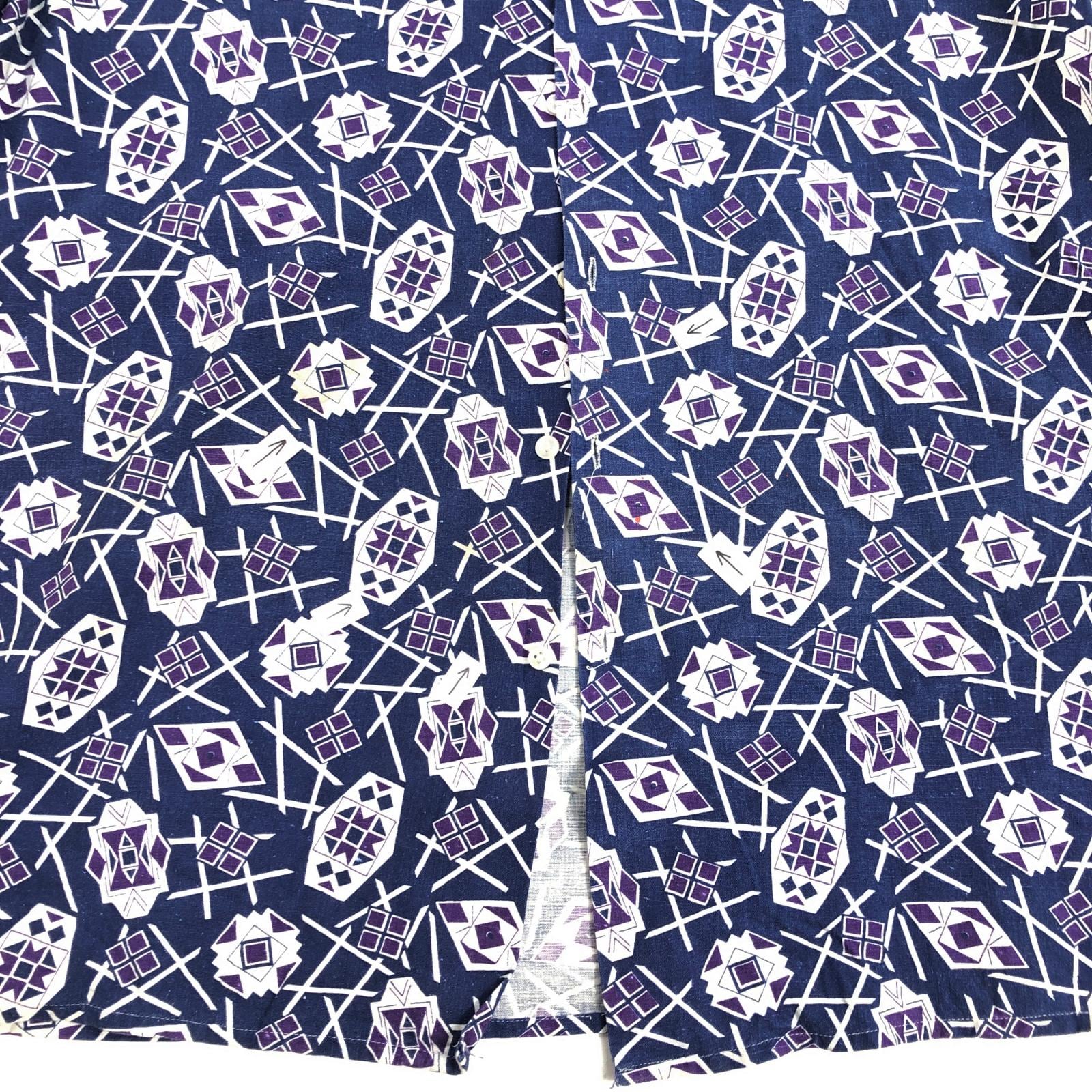 Lotus 60-70年代 長袖シャツ EURO VINTAGE 幾何学模様 VIETNAM製 パジャマシャツ