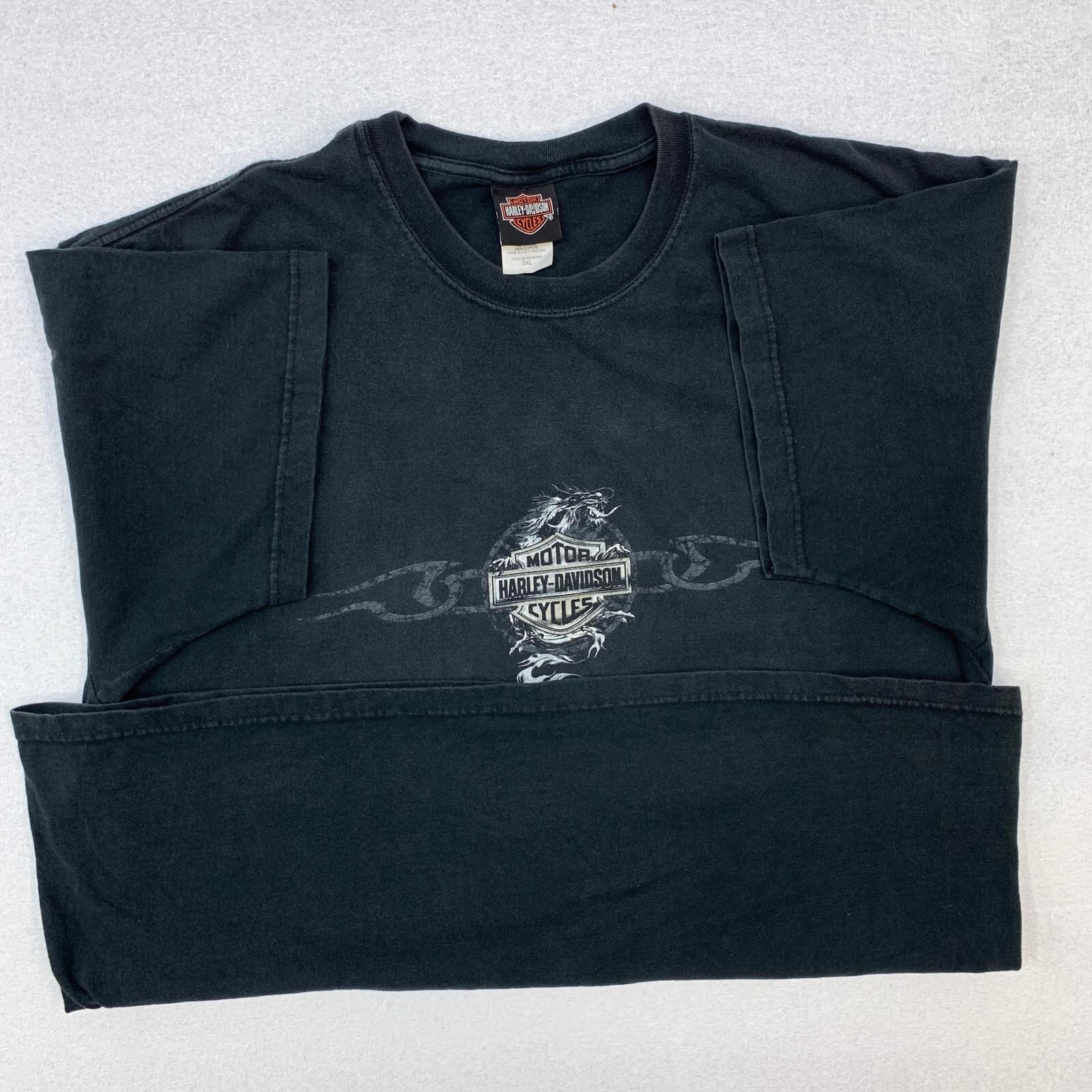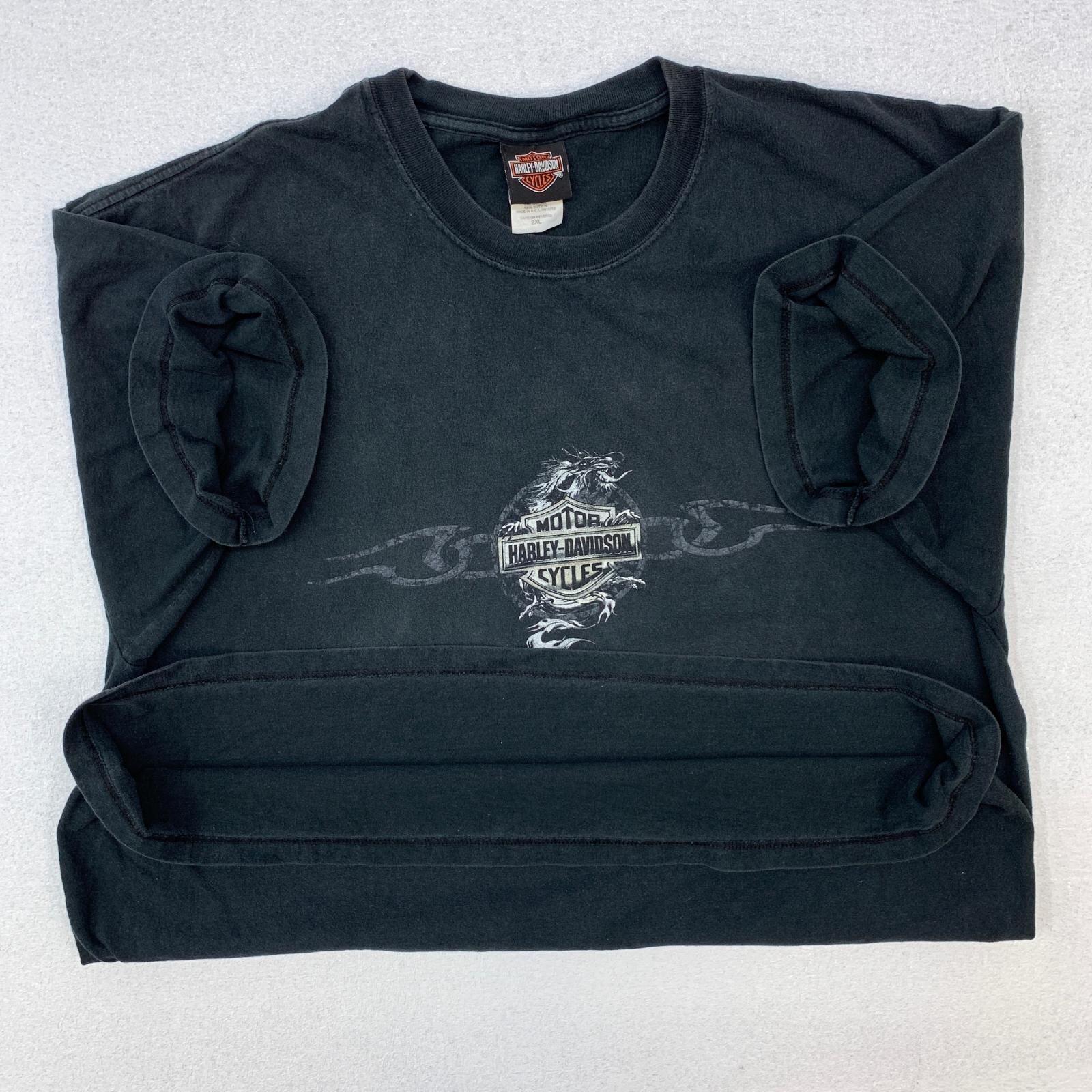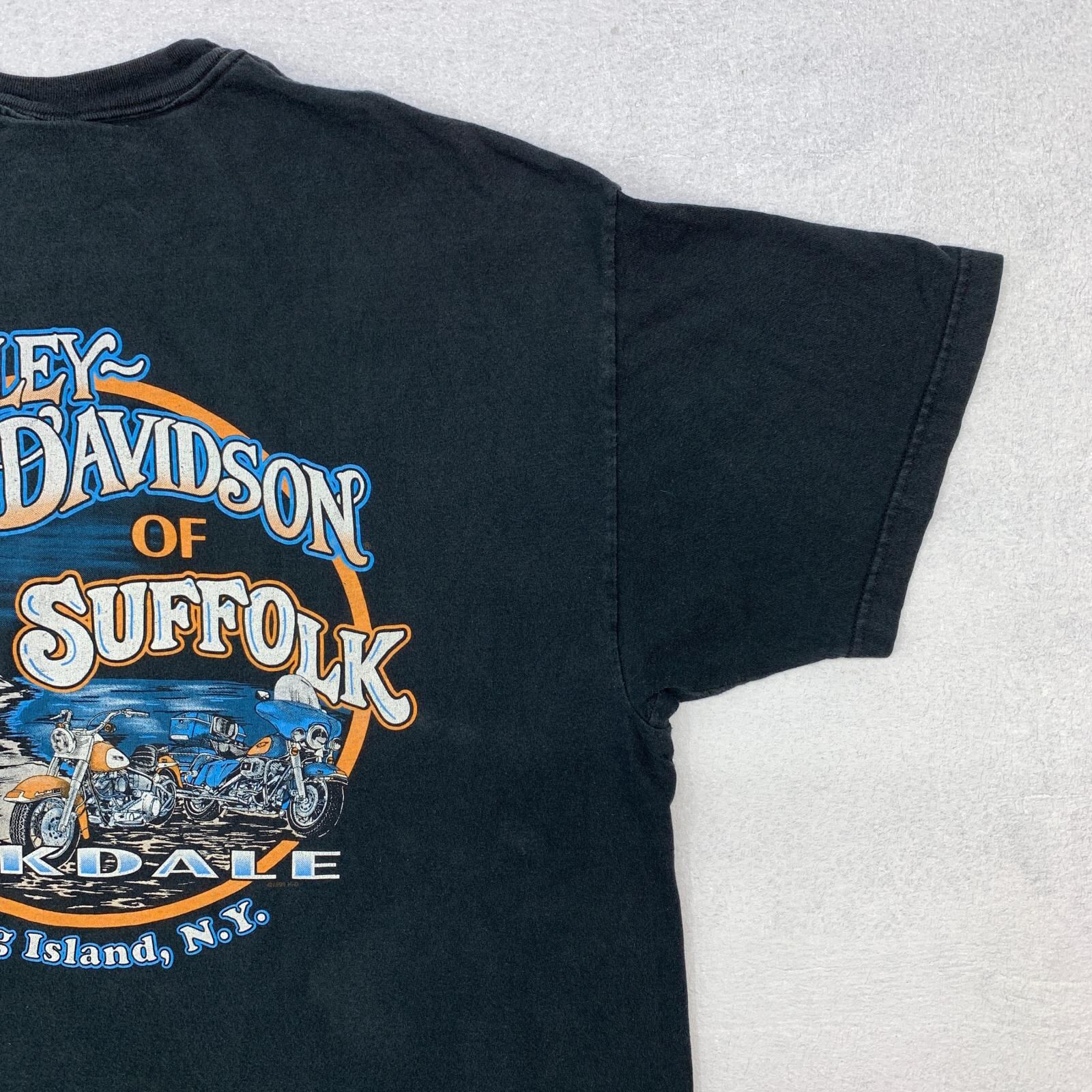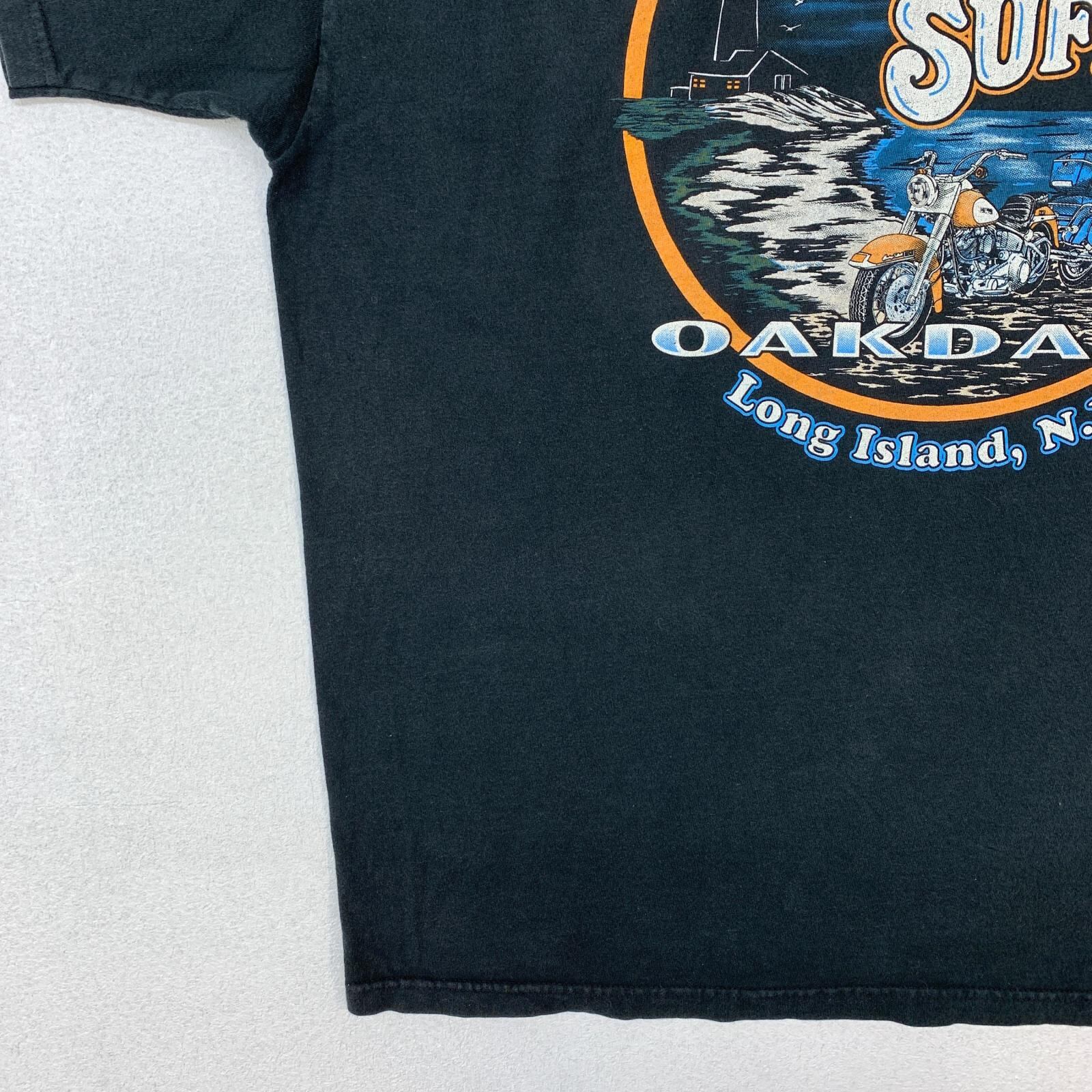 HARLEY-DAVIDSON ハーレーダビットソン 半袖Tシャツ 00年代 OAKDALE イラストカラープリント USA製 ブラック