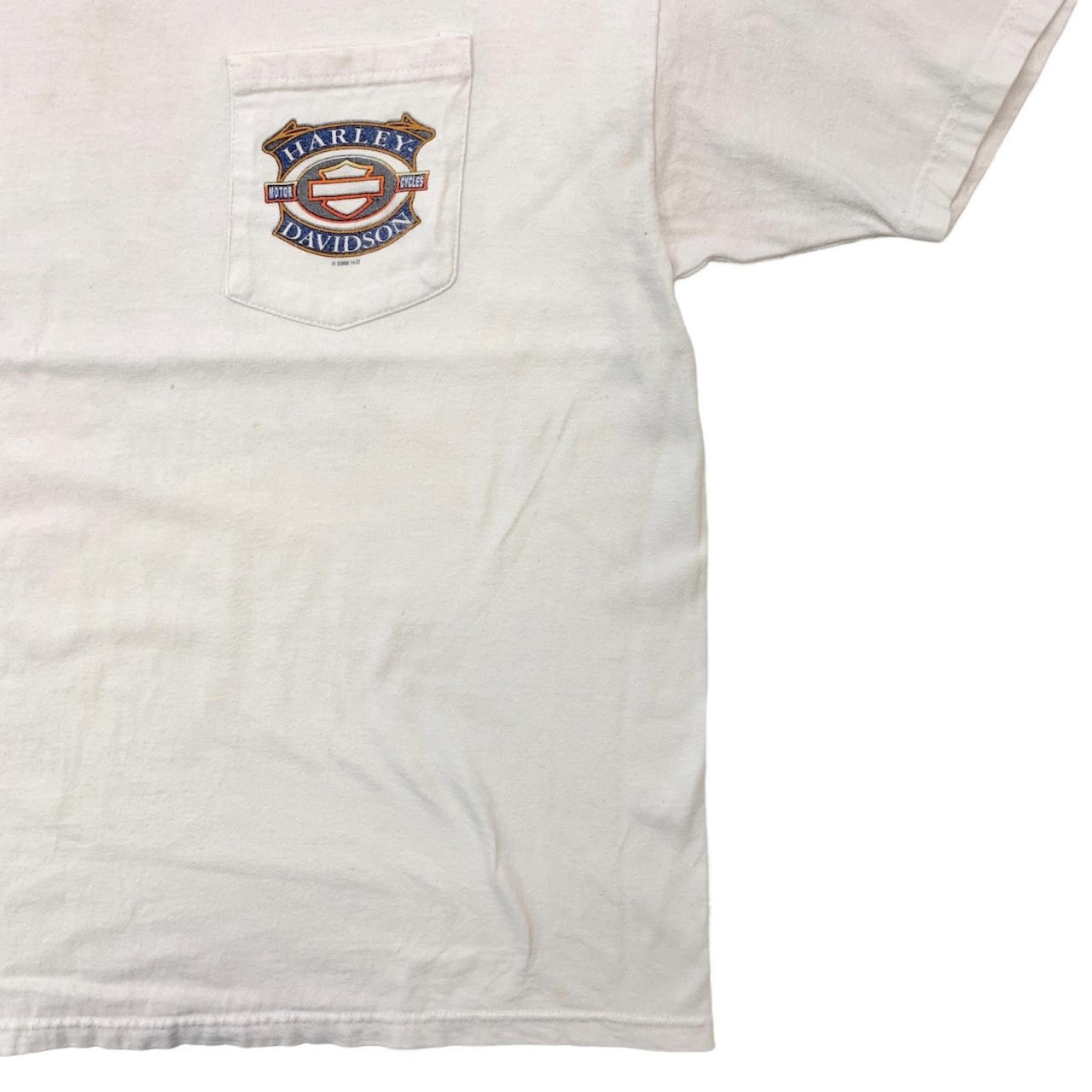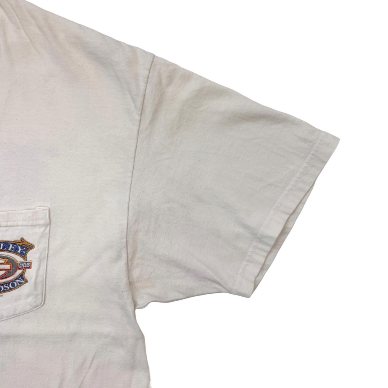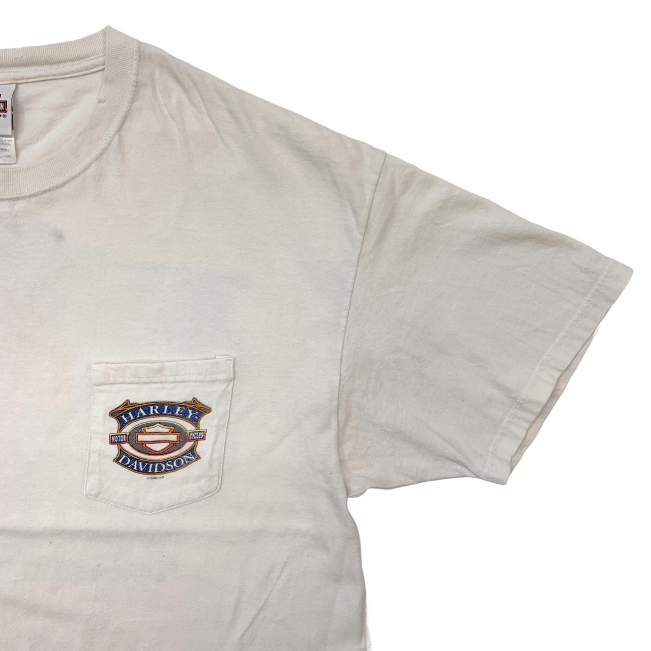 HARLEY-DAVIDSON ハーレーダビットソン 半袖Tシャツ 00年代 YERGAR'S ポケットTシャツ バイクプリント ヘインズ ビーフィーボディー Hanes BEFFY ベージュ サイズ:XL
