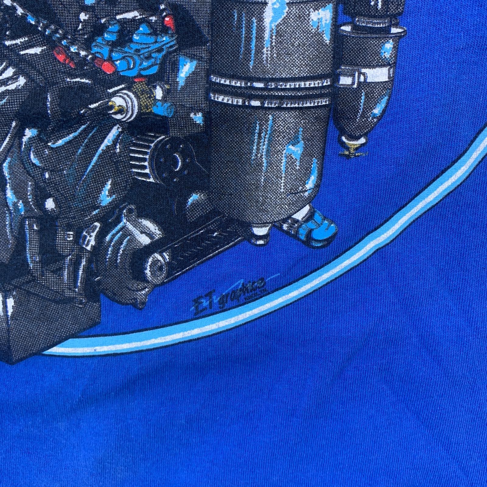 90年代 Hand D Fulton Race Engines 半袖Tシャツ ダートトラックレース ブルー サイズ:L