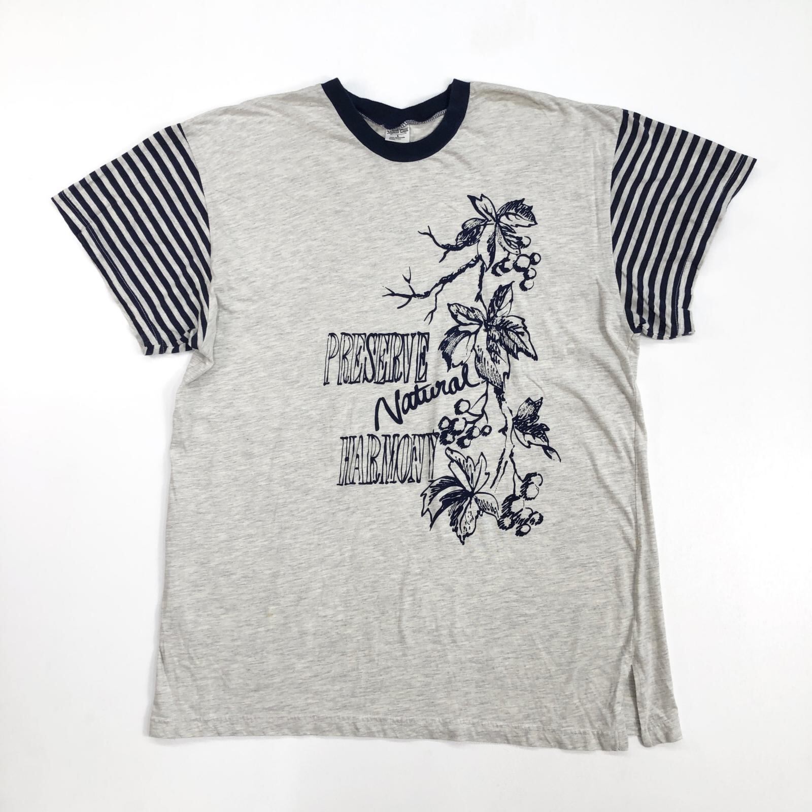 MARCEL CLAIR マルセルクリア 半袖Tシャツ PRESERVE HARMONY Natural アートプリント ボーダー袖 グレー サイズ:L