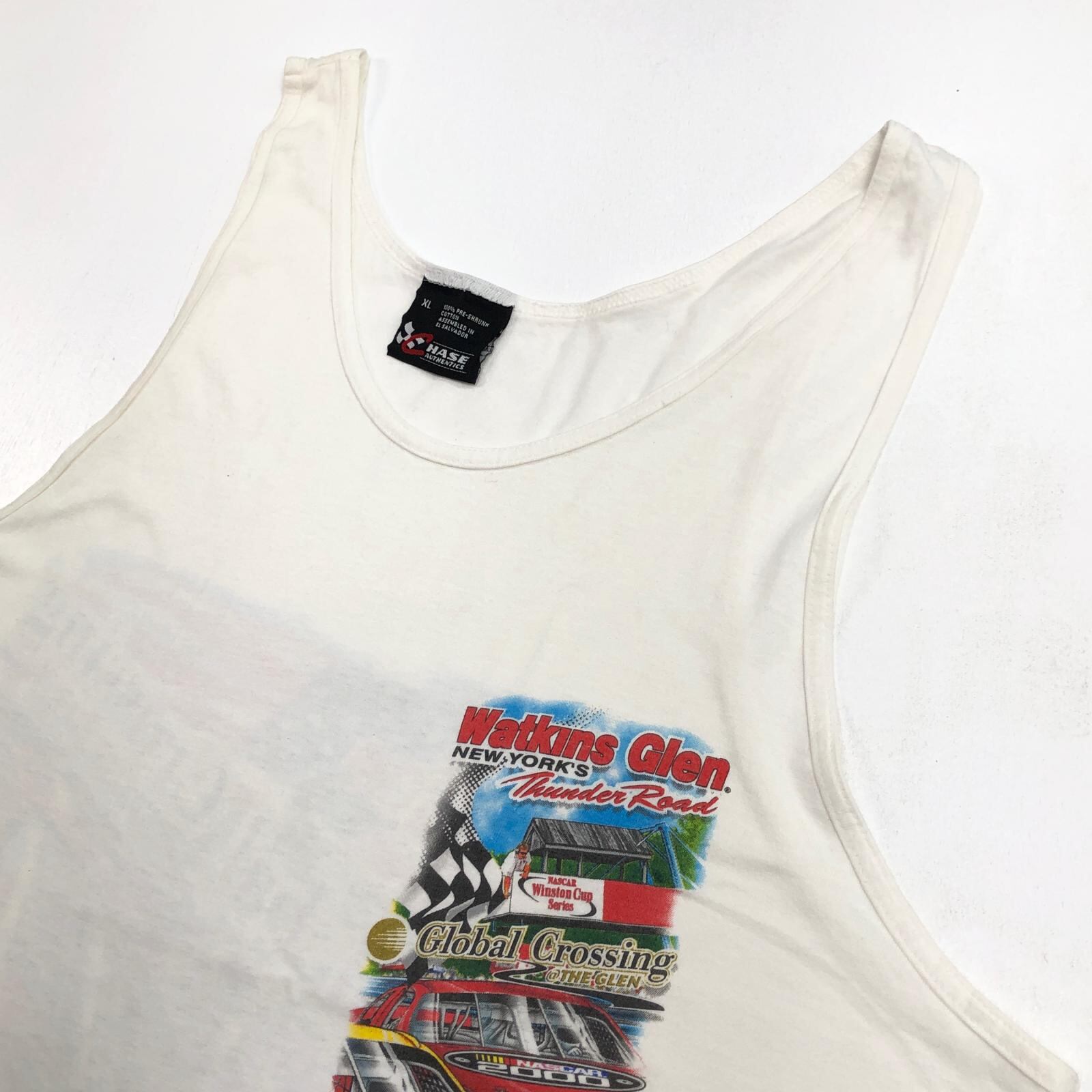 HAZE ヘイズ タンクトップ WATKINS GLEN NEW YORK'S カーレース ホワイト サイズ:XL
