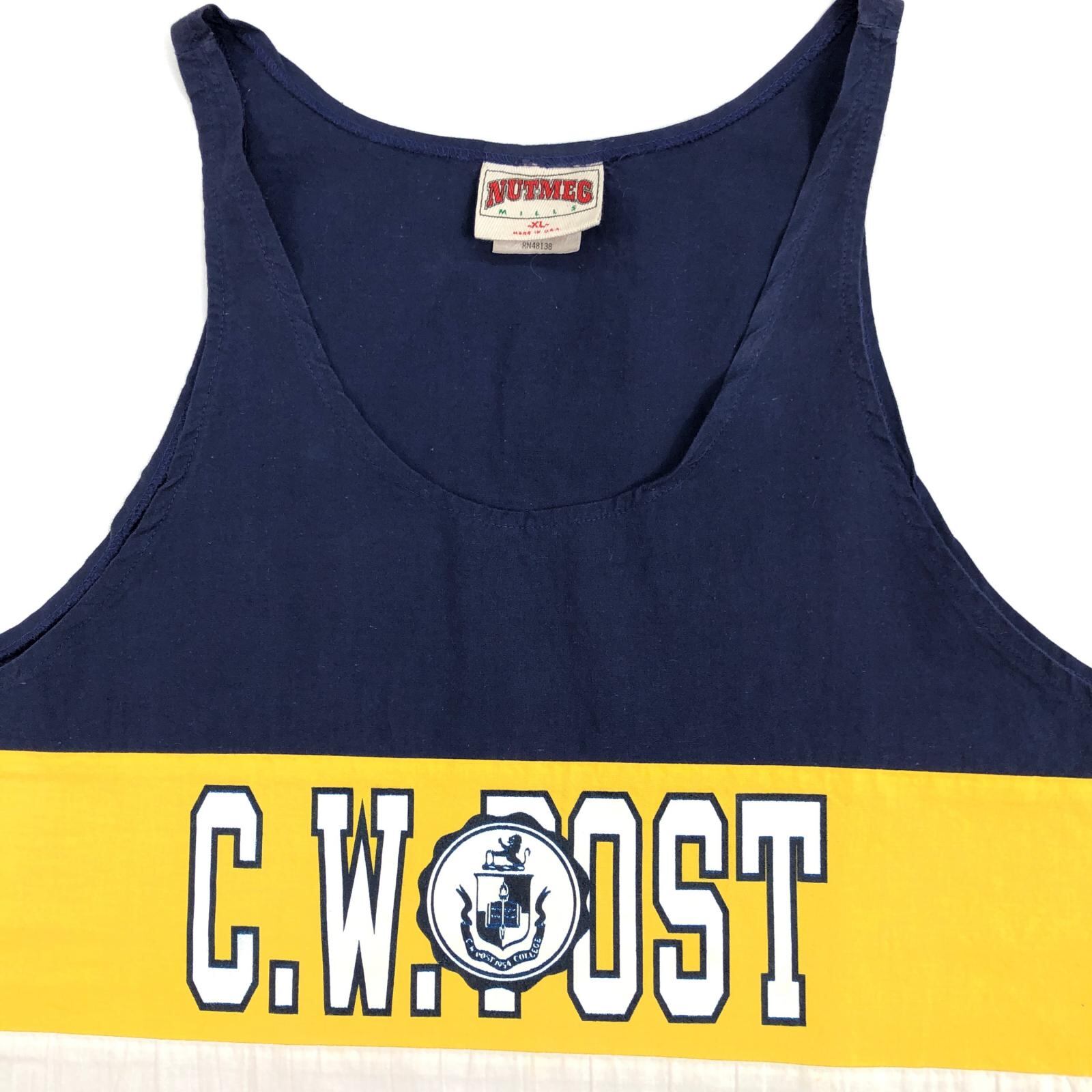 90年代 NUTMEG ナツメグ タンクトップ C.W.POST カレッジ USA製 ネイビー サイズ:XL