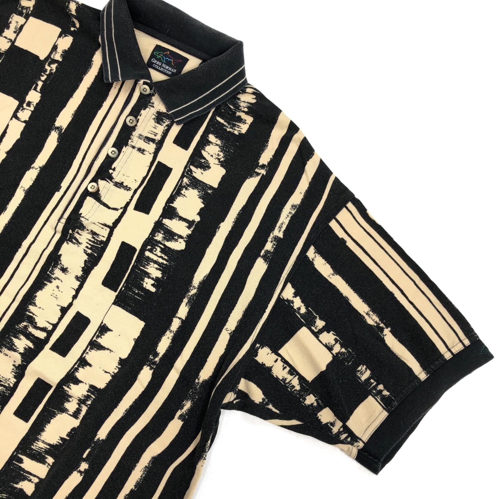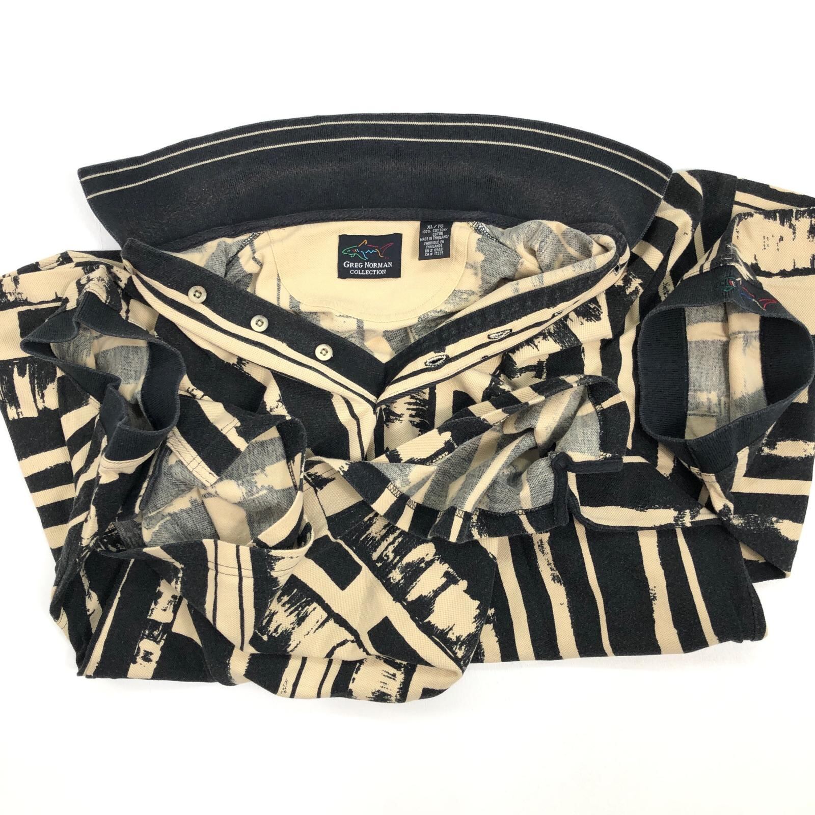GREG NORMAN COLLECTION ポロシャツ モノクロアートストライプ ブラック サイズ:XL