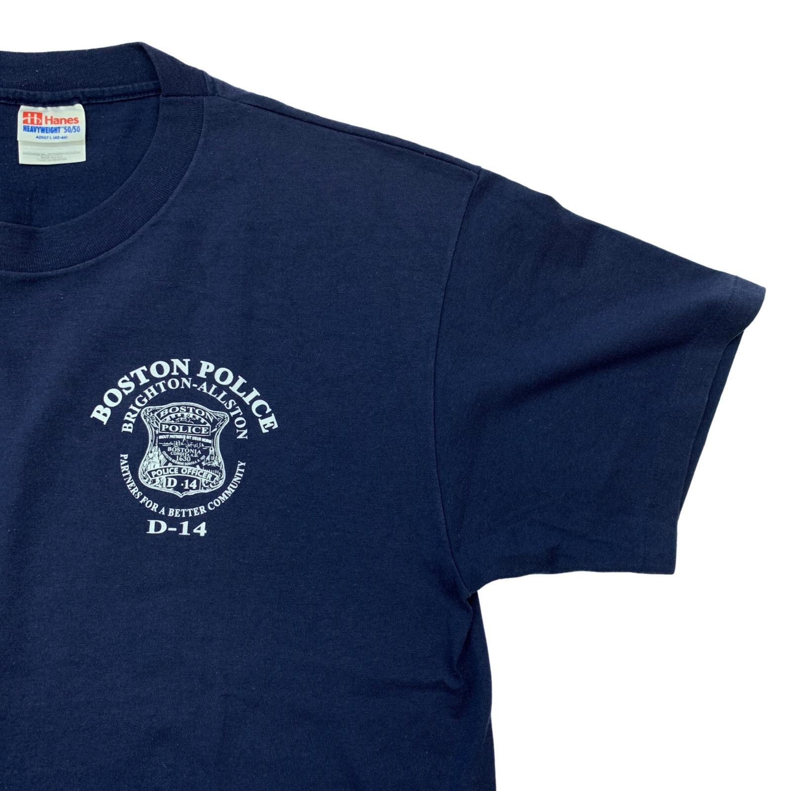 Hanes ヘインズ 半袖Tシャツ 90年代 BOSTON POLICE D-14 ネイビー サイズ:L