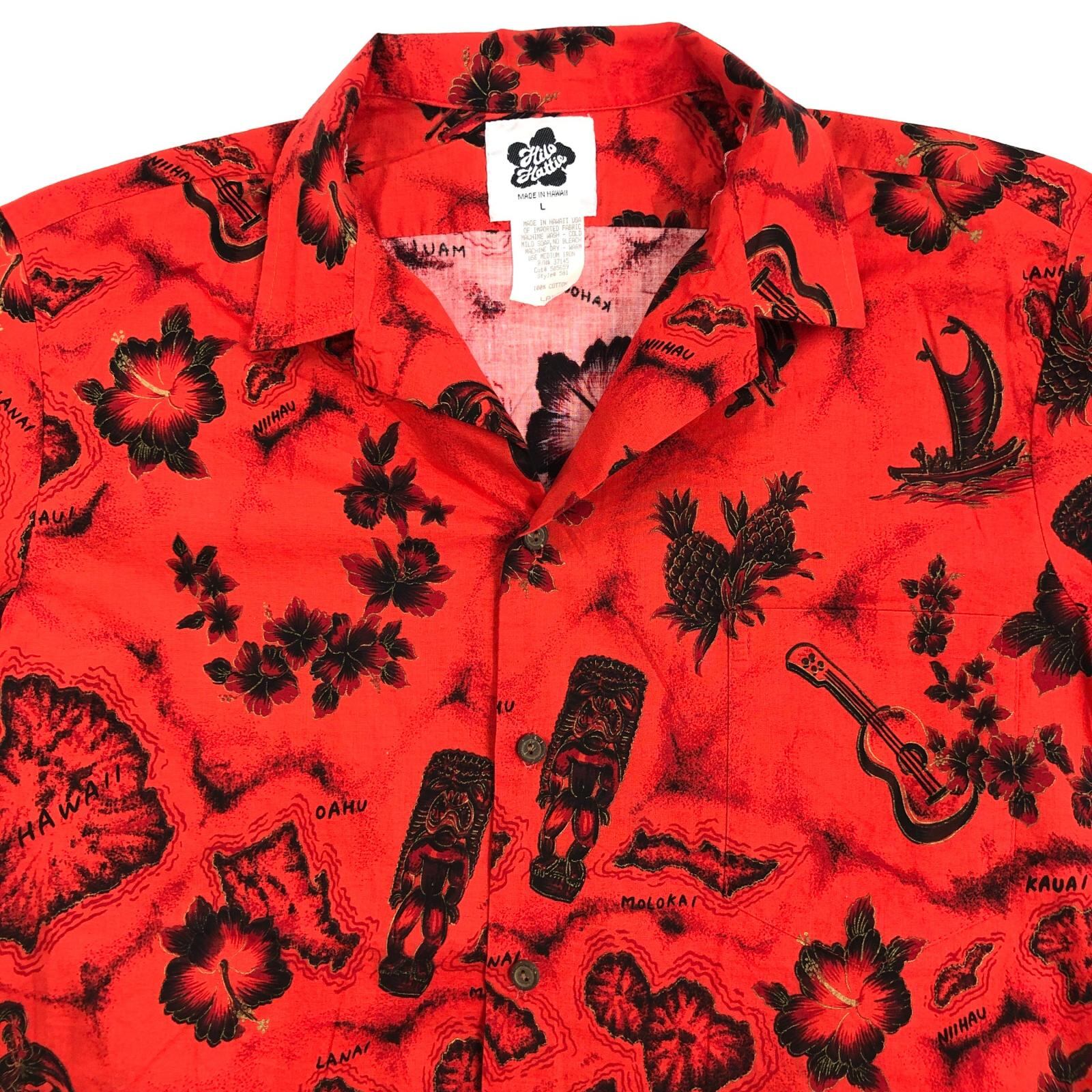 Hilo Hattie ハワイアンシャツ ウクレレ パイナップル HAWAII USA製 レッド サイズ:L