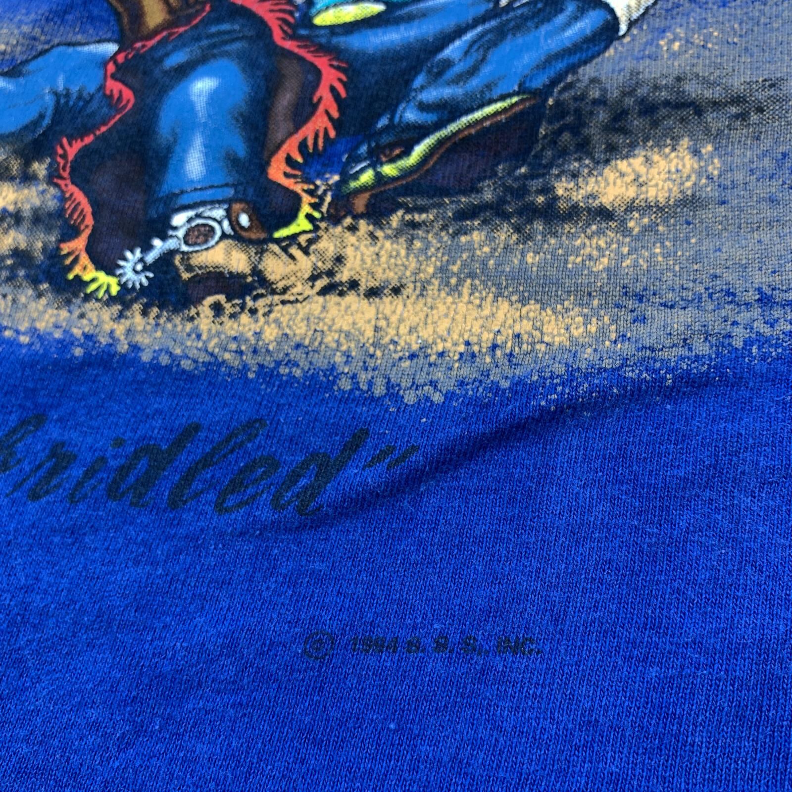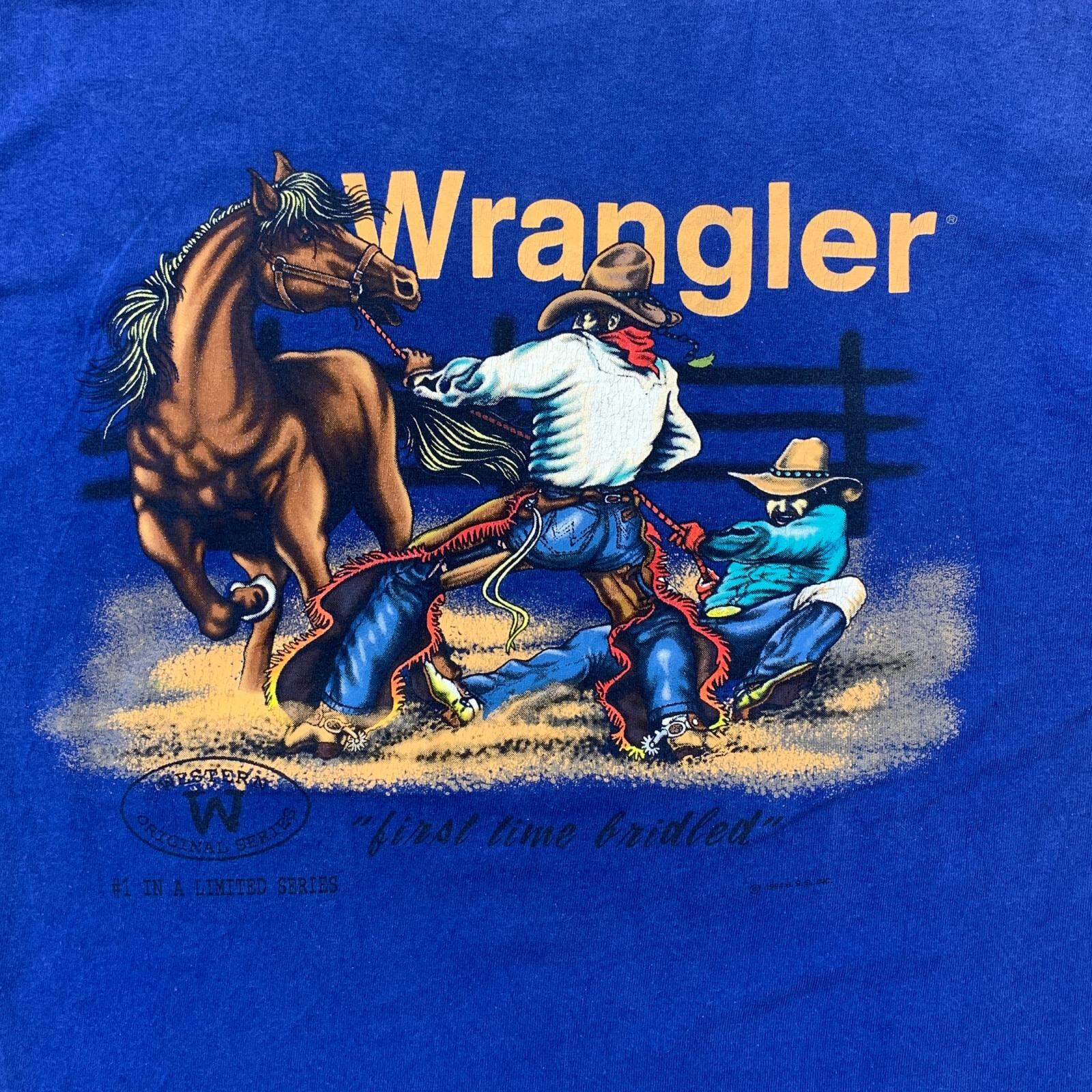 Wrangler ラングラー 半袖Tシャツ 90年代 cowboy rodeo カウボーイ ロデオ 両面 2面プリント ブルー サイズ:L