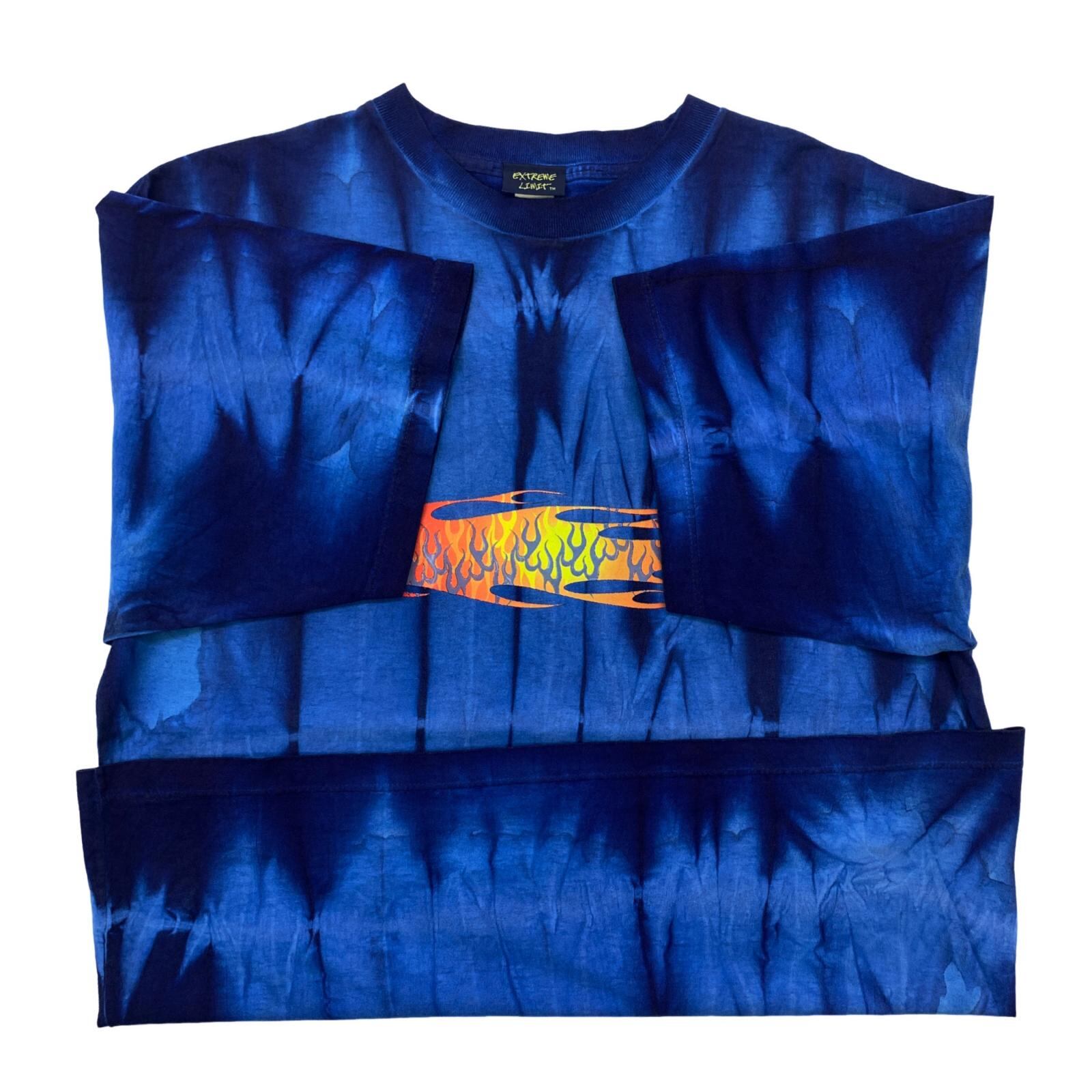 EXTREME LIMIT エクストリーム リミット 00年代 半袖Tシャツ フレイム ファイヤー タイダイ ブルー サイズ:L