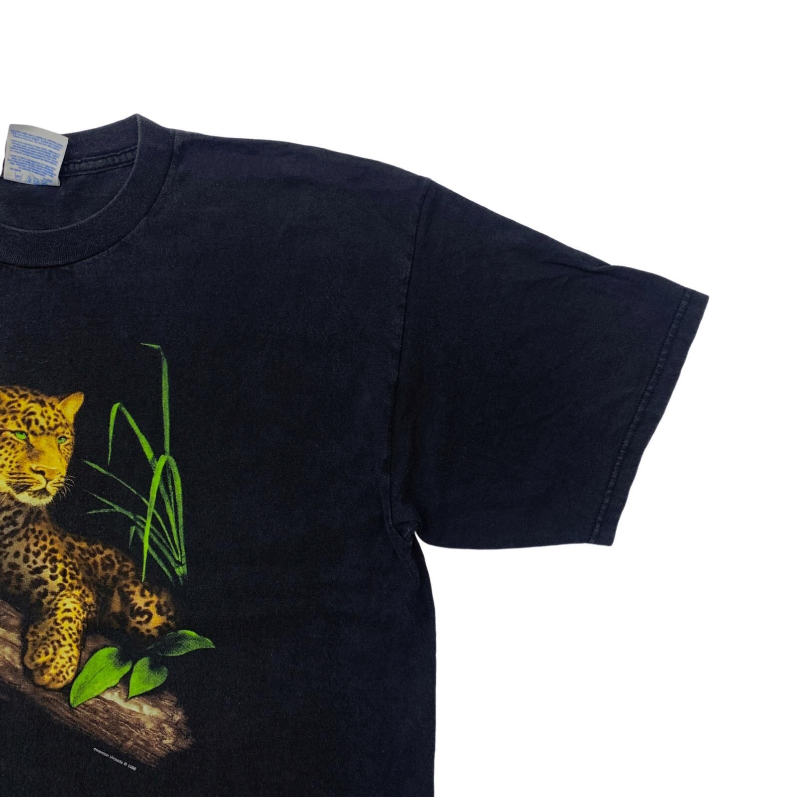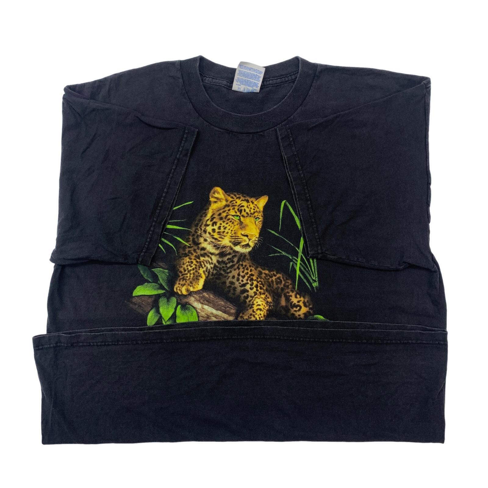 GILDAN 90年代 半袖Tシャツ アニマルプリント 豹 ブラック サイズ:XL