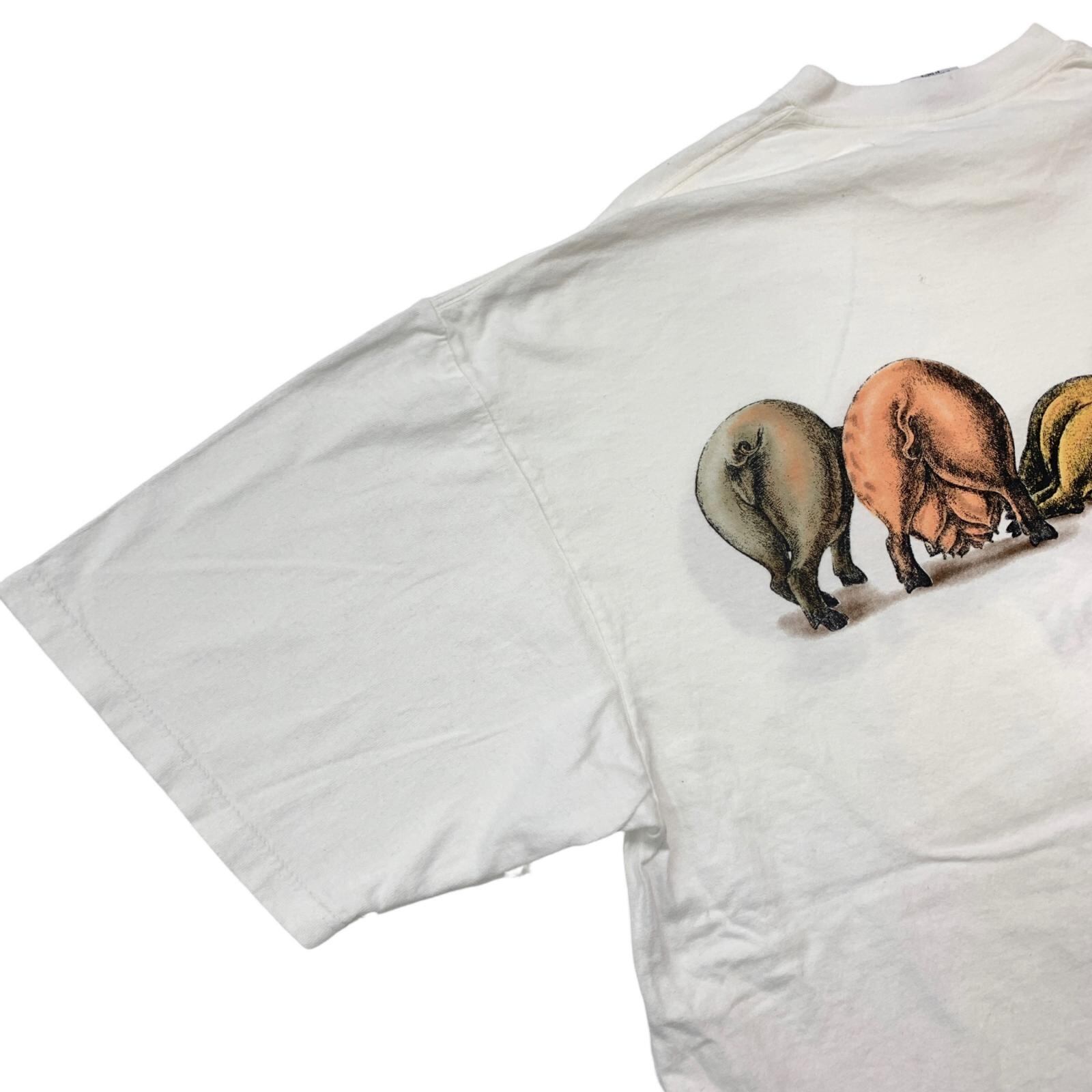 PRINTS OF TAILS ONEITA 半袖Tシャツ 豚 両面プリント ホワイト サイズ:XXL