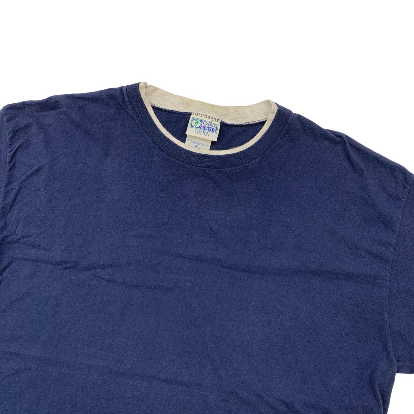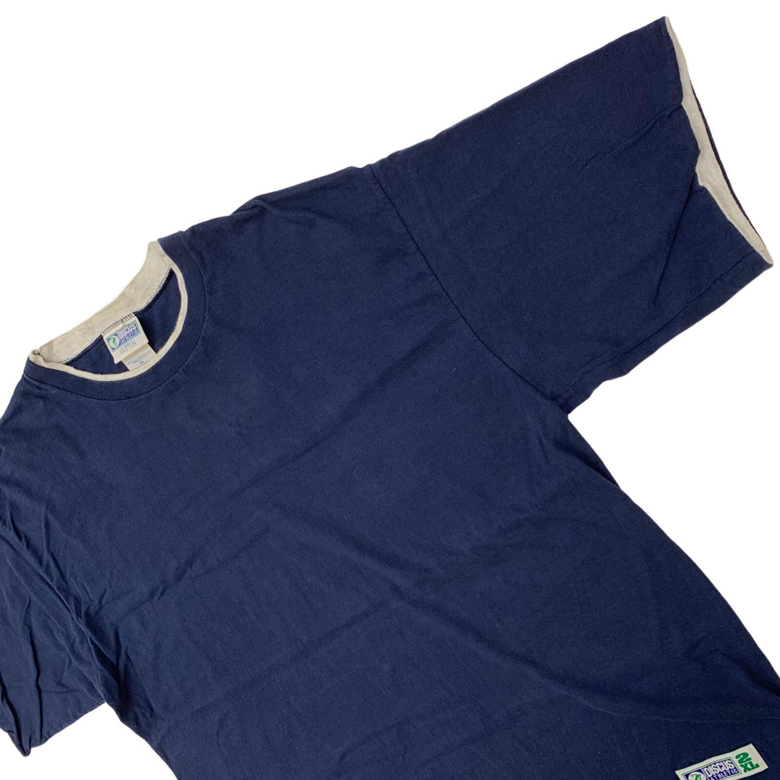 90年代 DISCUS ディスカス 半袖Tシャツ フェイクレイヤード ネイビー