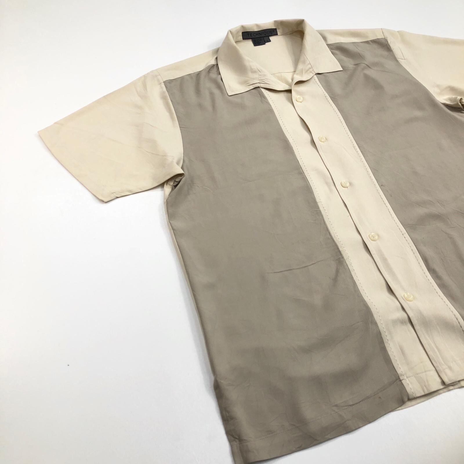TECHNIQUE 半袖シャツ ラインシャツ ベージュ サイズ:L