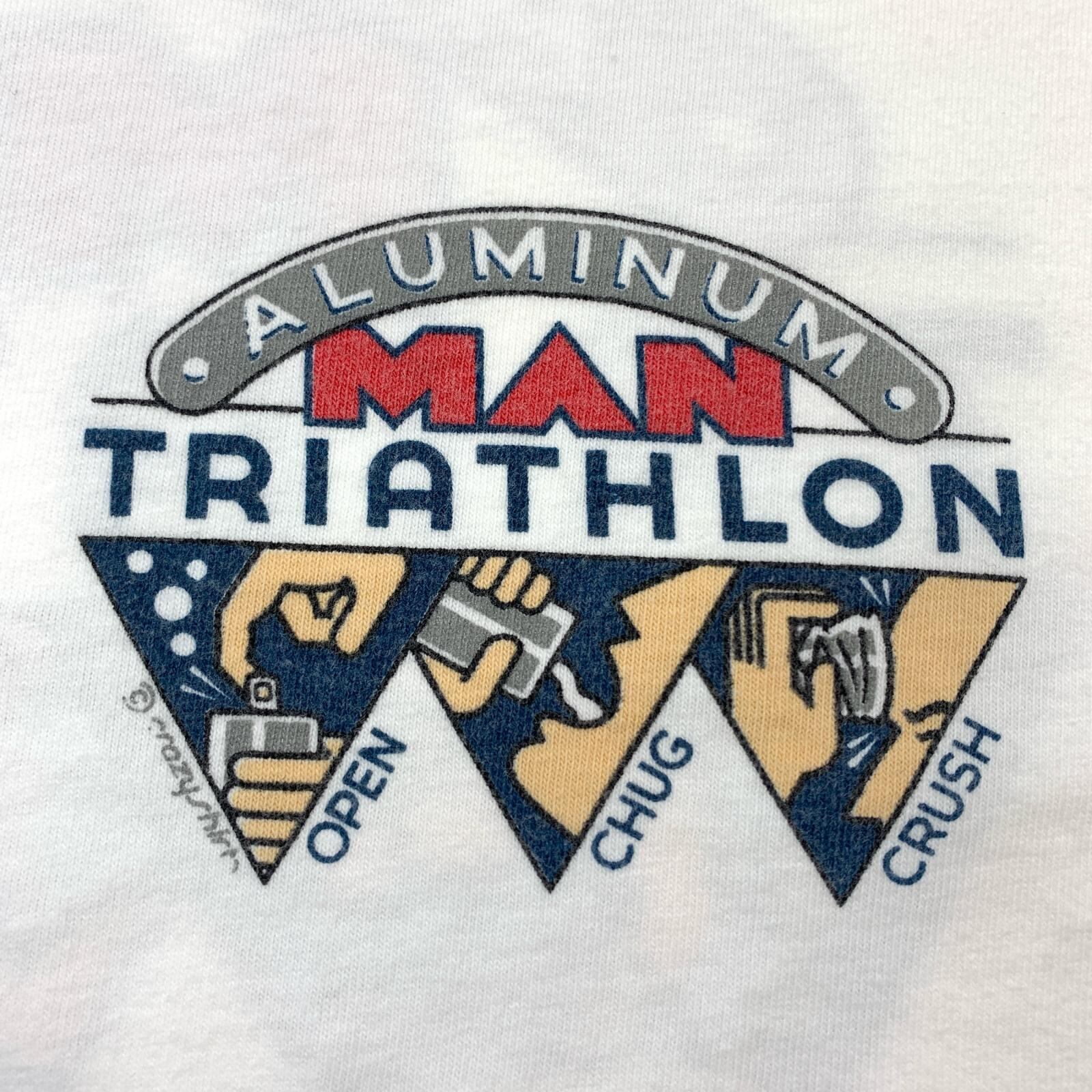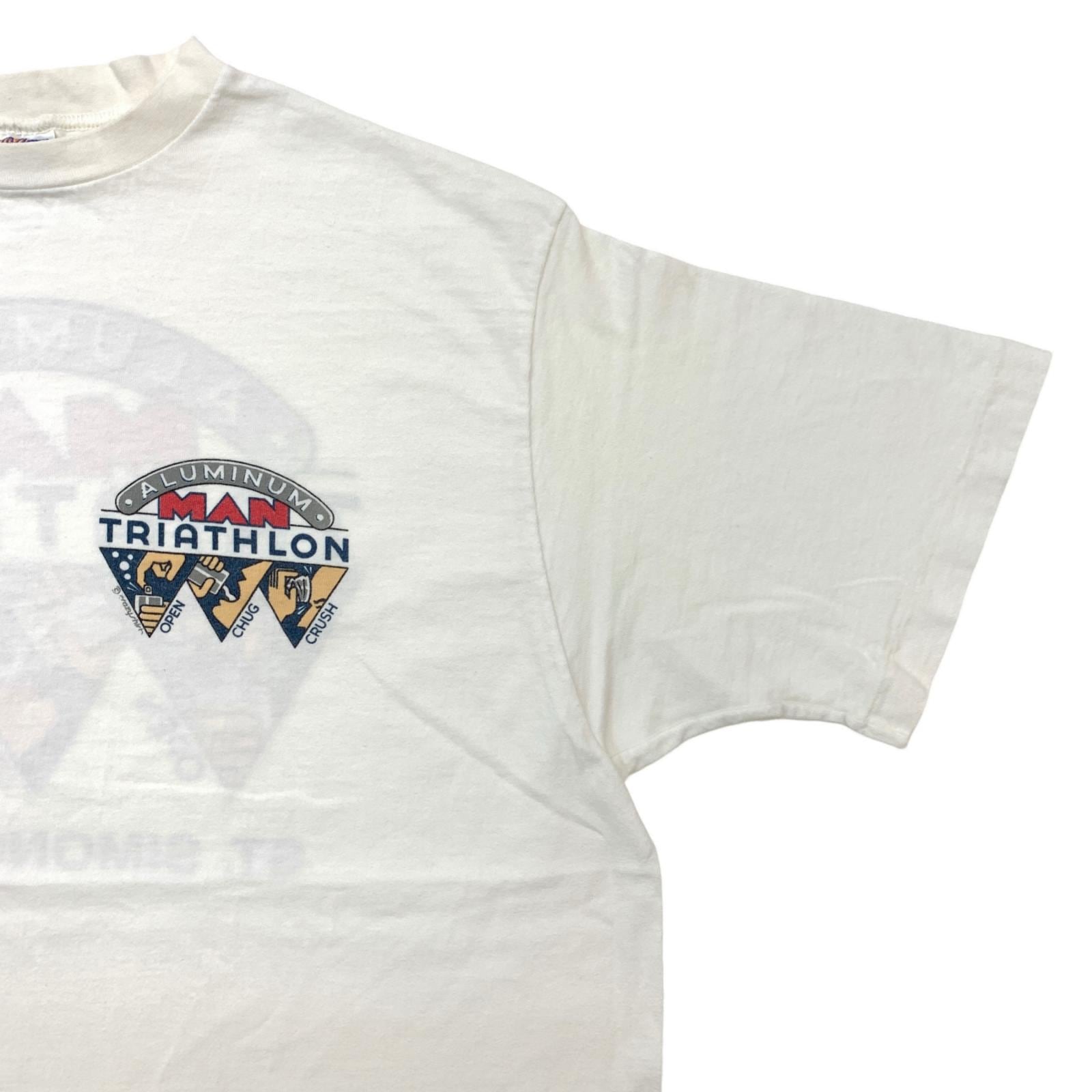 Crazy Shirt クレイジーシャツ 90年代 ALMINIUM MAN TRIATHLON ハーフマラソン 半袖Tシャツ USA製 ホワイト サイズ:XL