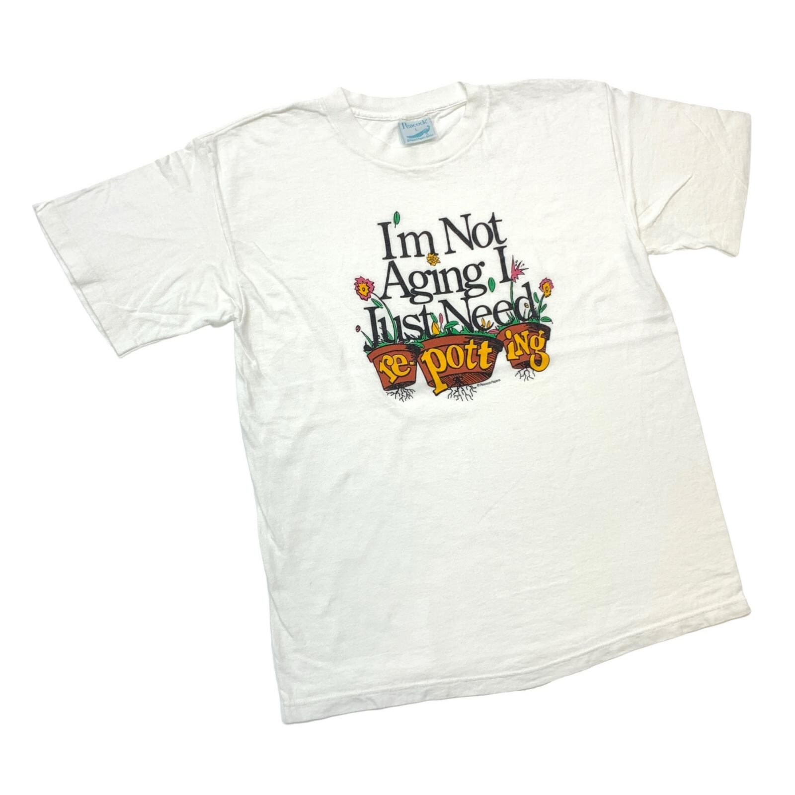 90年代 PEACOCK PAPERS プリントTシャツ 半袖Tシャツ メッセージ 植物 USA製 ホワイト サイズ:L