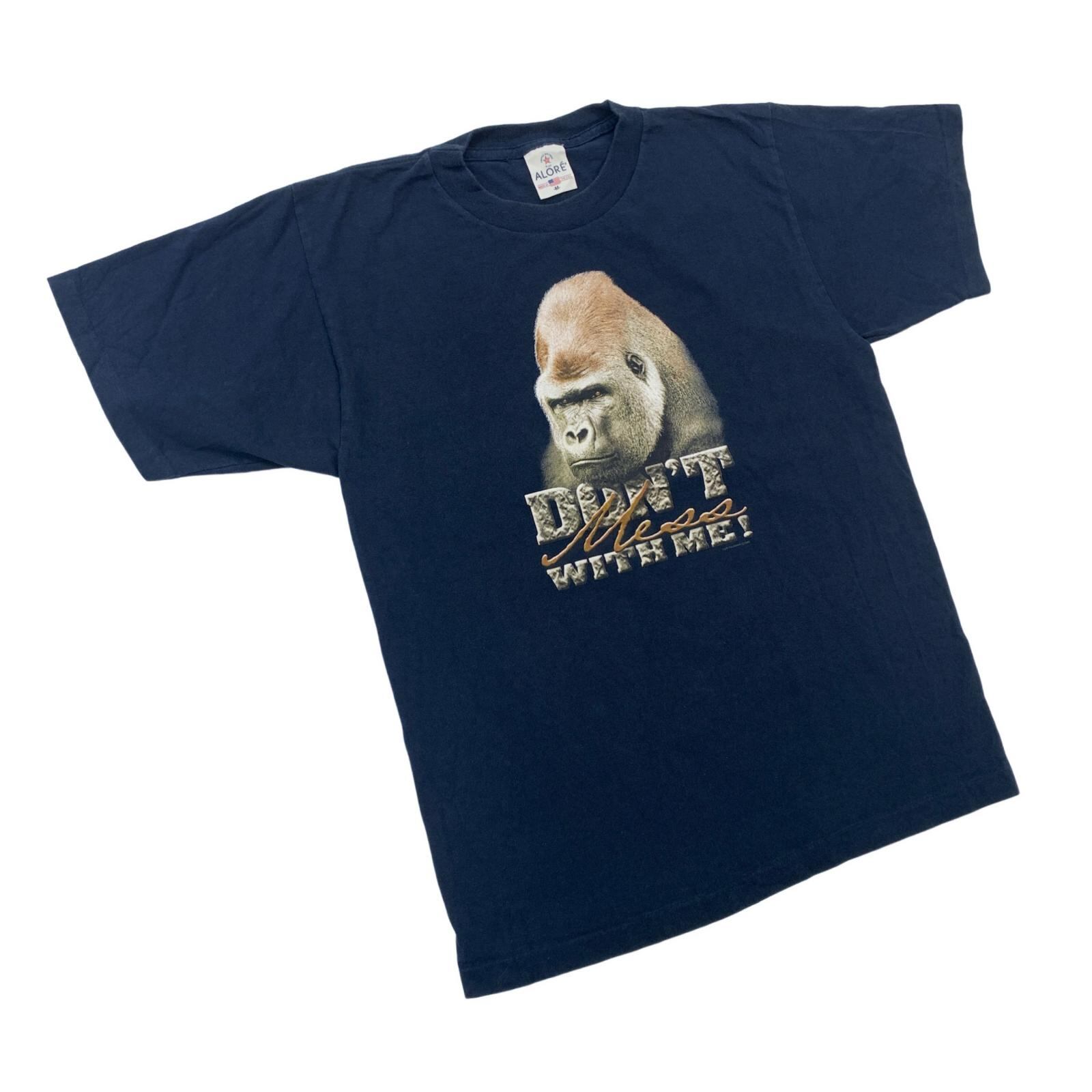 00年代 ALORE USA製 DON'T WITH ME 半袖Tシャツ アニマル ゴリラ ネイビー サイズ:M
