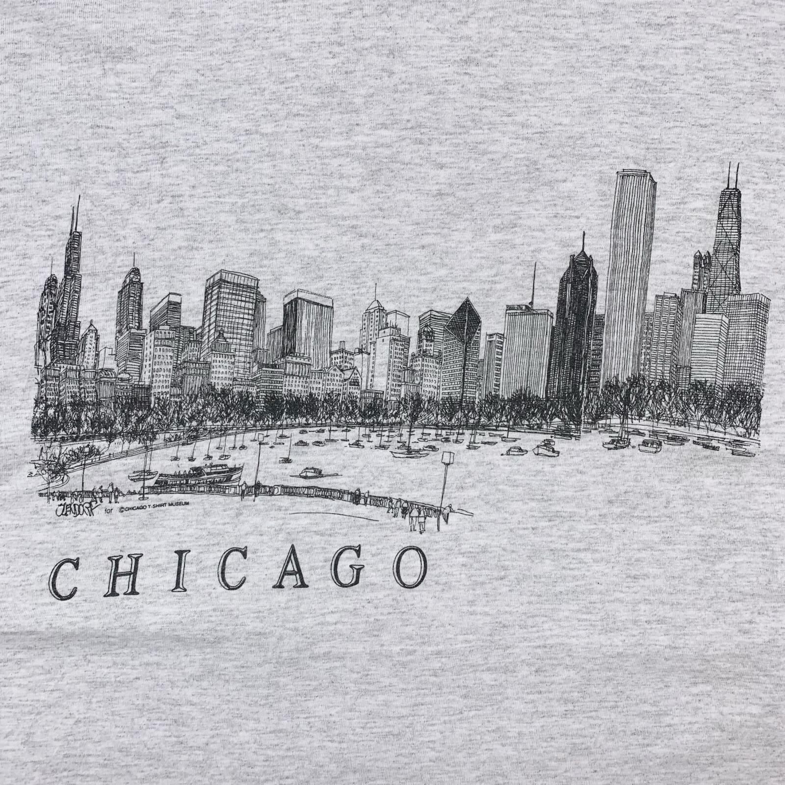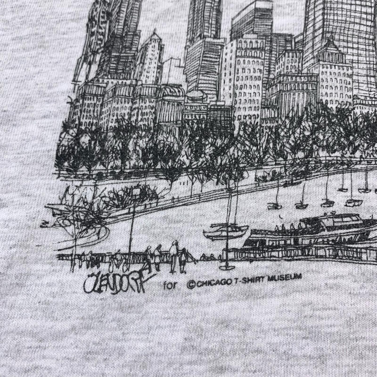 90年代 SIGNAL CHICAGO T-SHIRTS MUSEUM イラスト 半袖Tシャツ グレー サイズ:XL