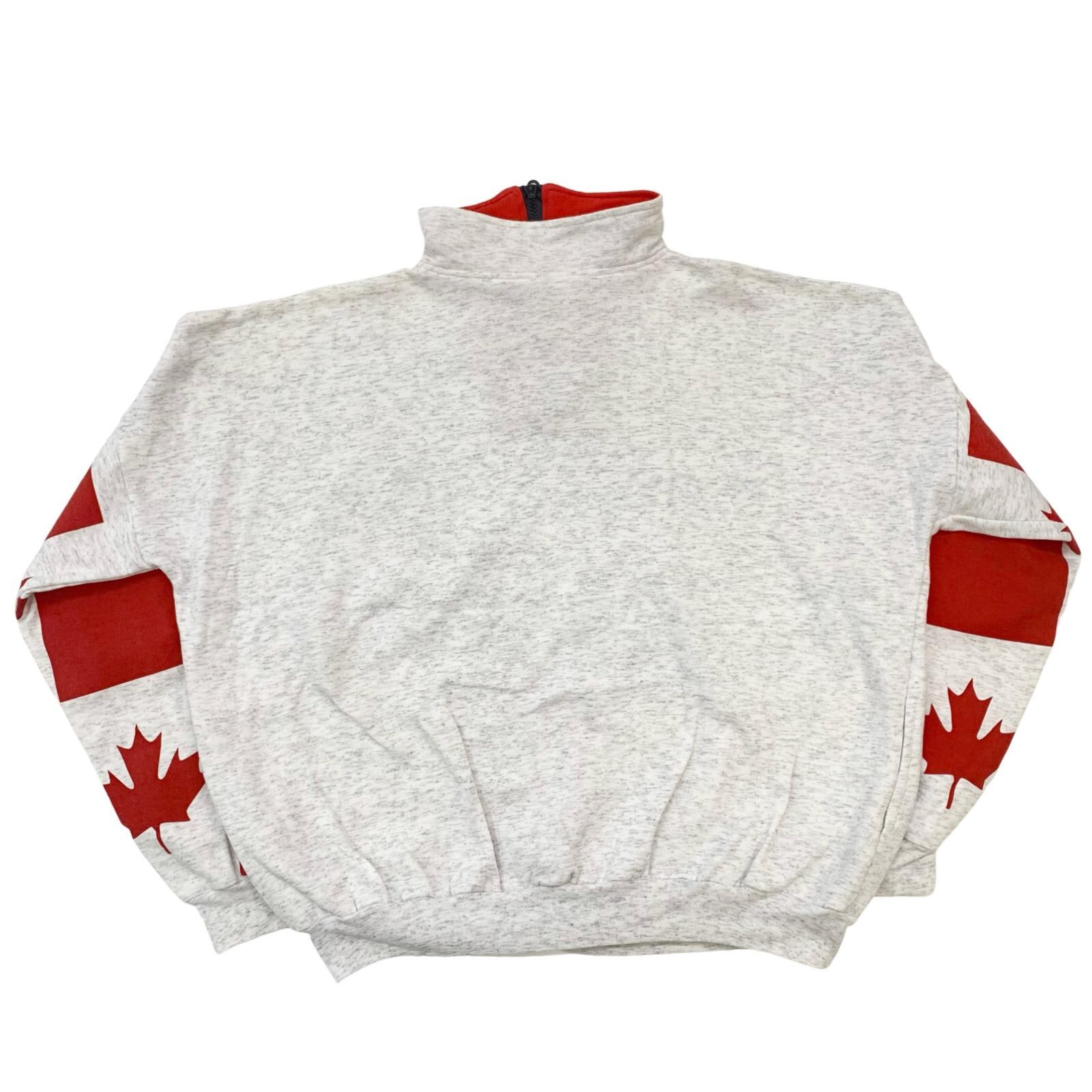 UNIQUE CANADA ハーフジップ 国旗 メープル スウェット グレー サイズ:XL