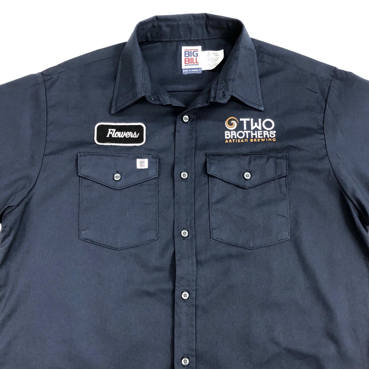 BIG BILL TWO BROTHERS ARTISAN BREWING ワークシャツ 半袖シャツ カナダ製 ネイビー サイズ:XL