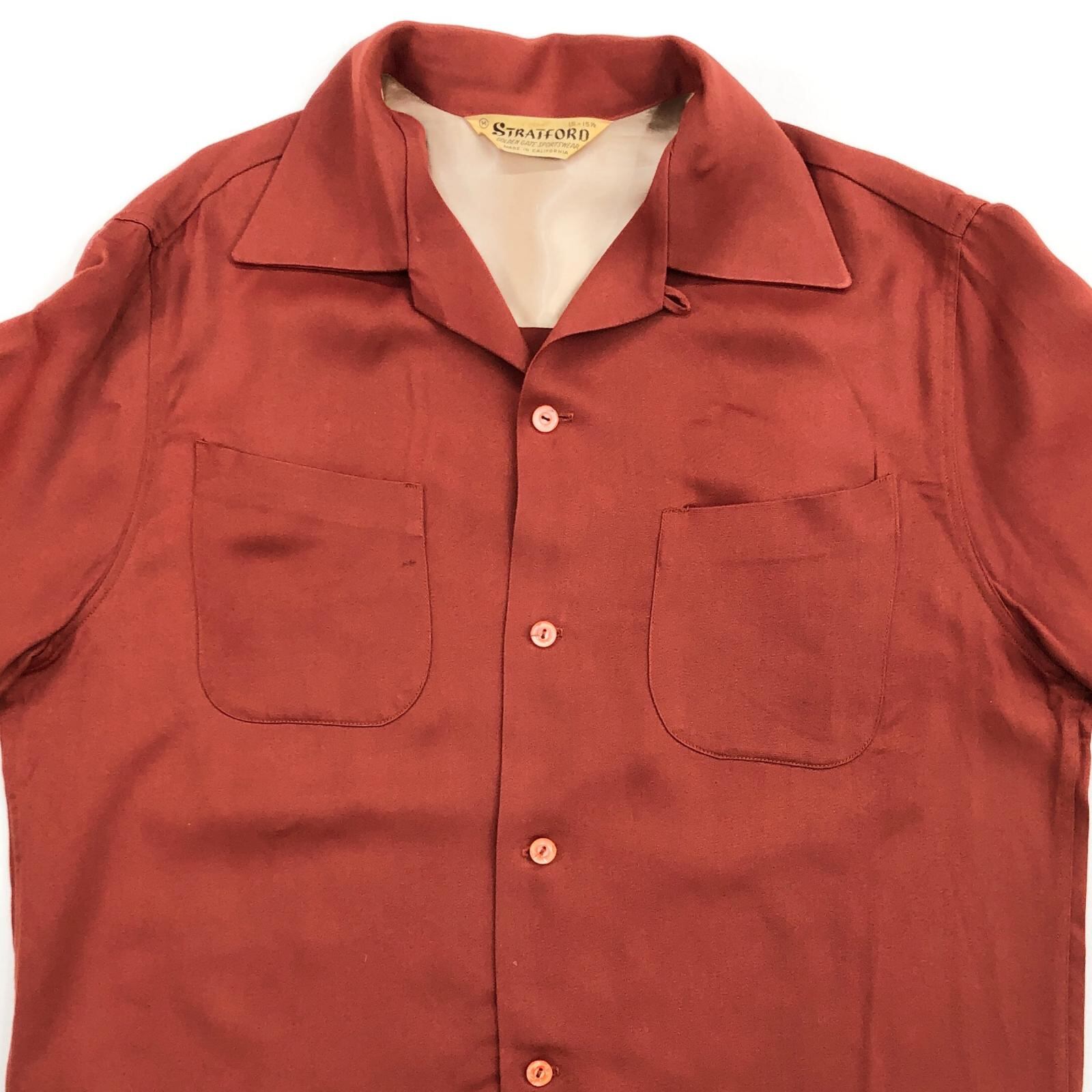 ~60年代 STRATFORD 開襟シャツ 長袖シャツ レーヨン ギャバジン オレンジ
