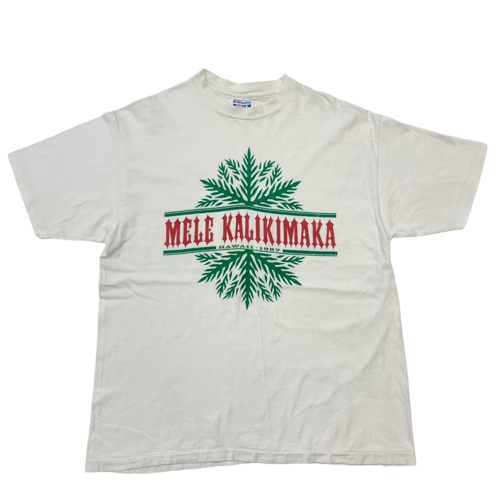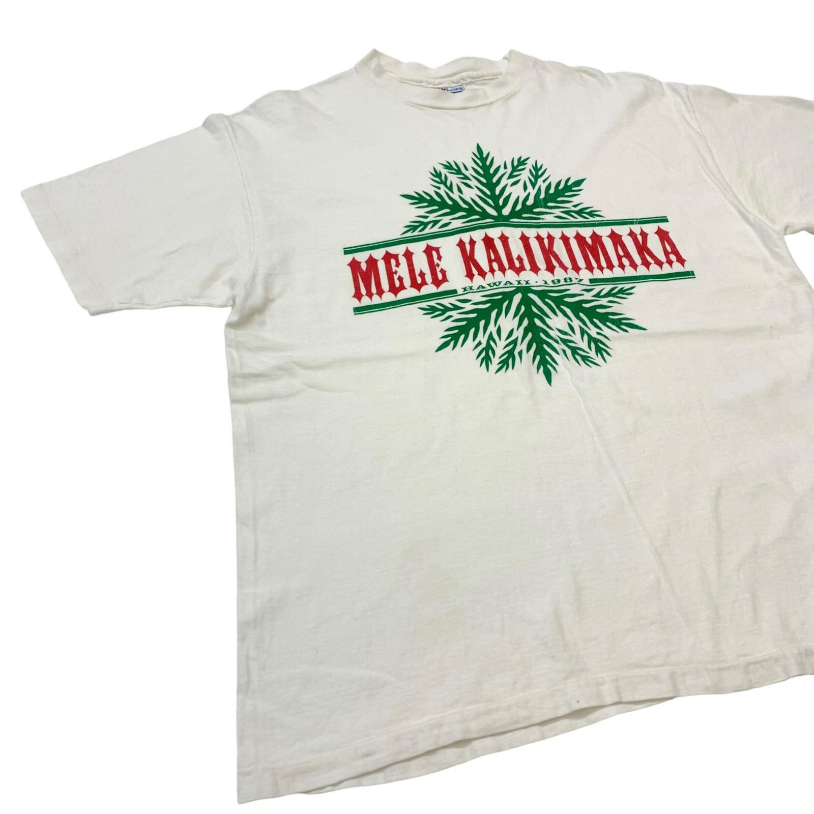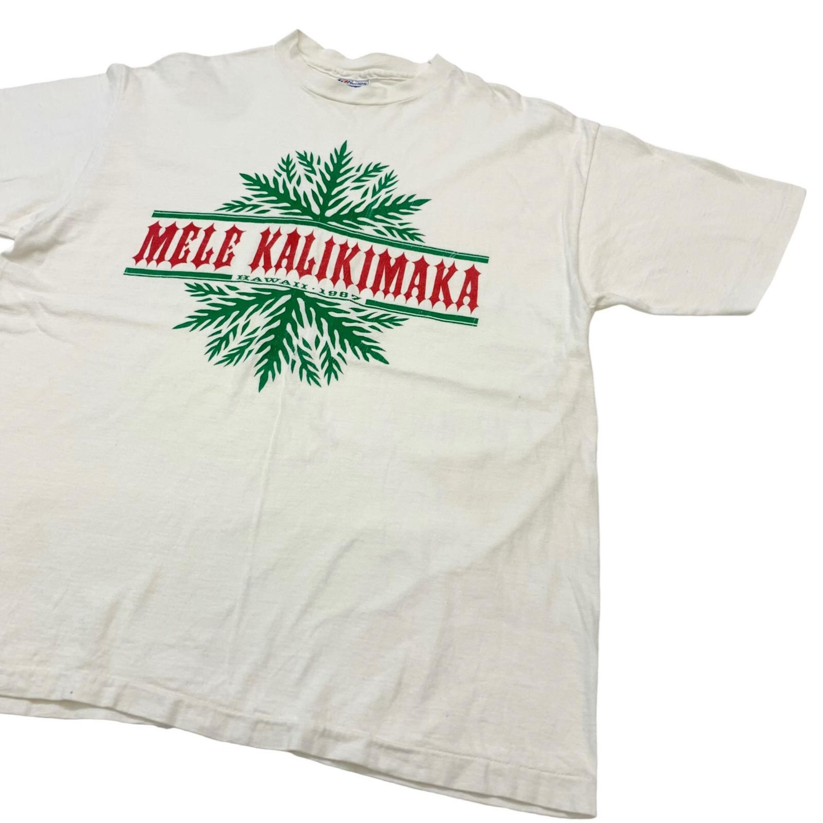 Hanes ヘインズ 半袖Tシャツ 90年代 MELE KALIKIMAKA メリークリスマス WAHAII USA製 ホワイト サイズ:XL